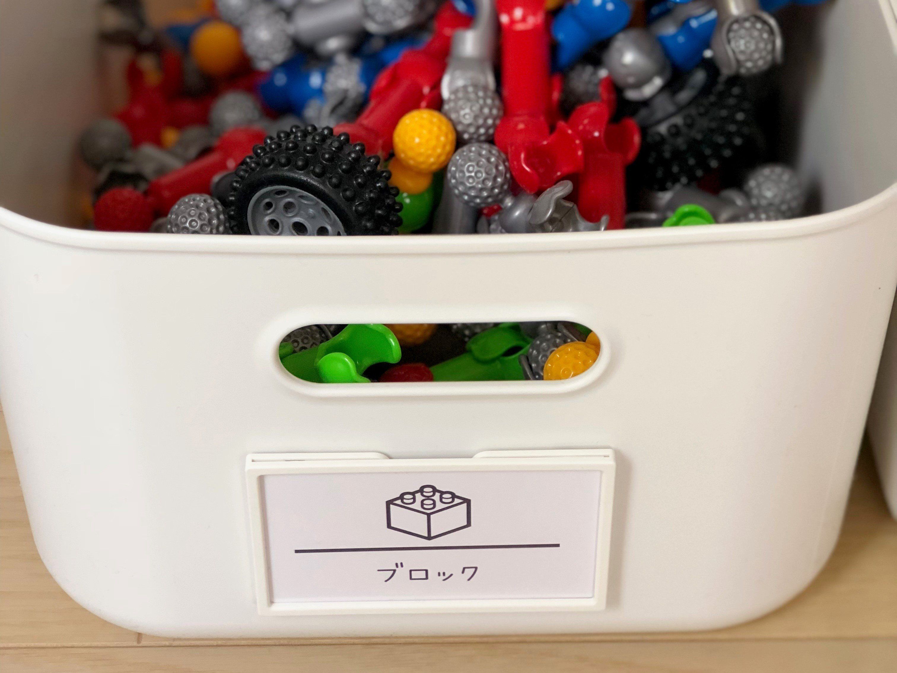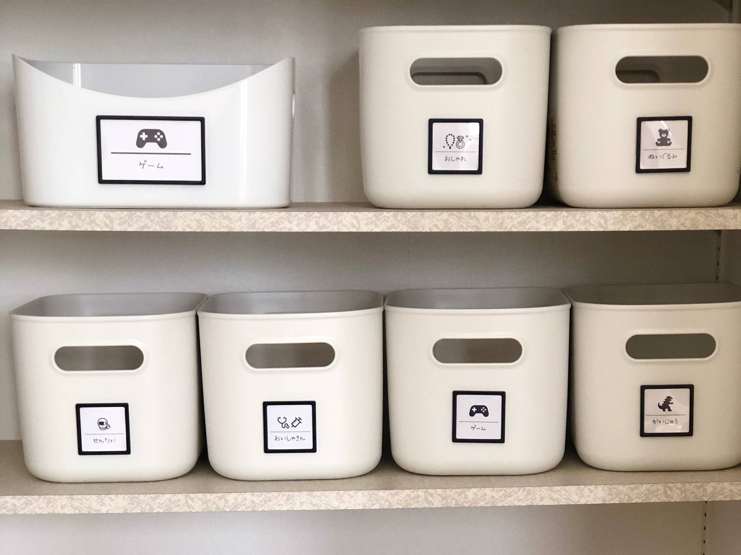 おもちゃなどは、ケースにラベルを貼るなどして、どこに何を戻すのかがひと目でわかるようにすれば、子どもも戻しやすいです。また、ケースは子どもにとって持ちやすいサイズ&形状であることが大切。