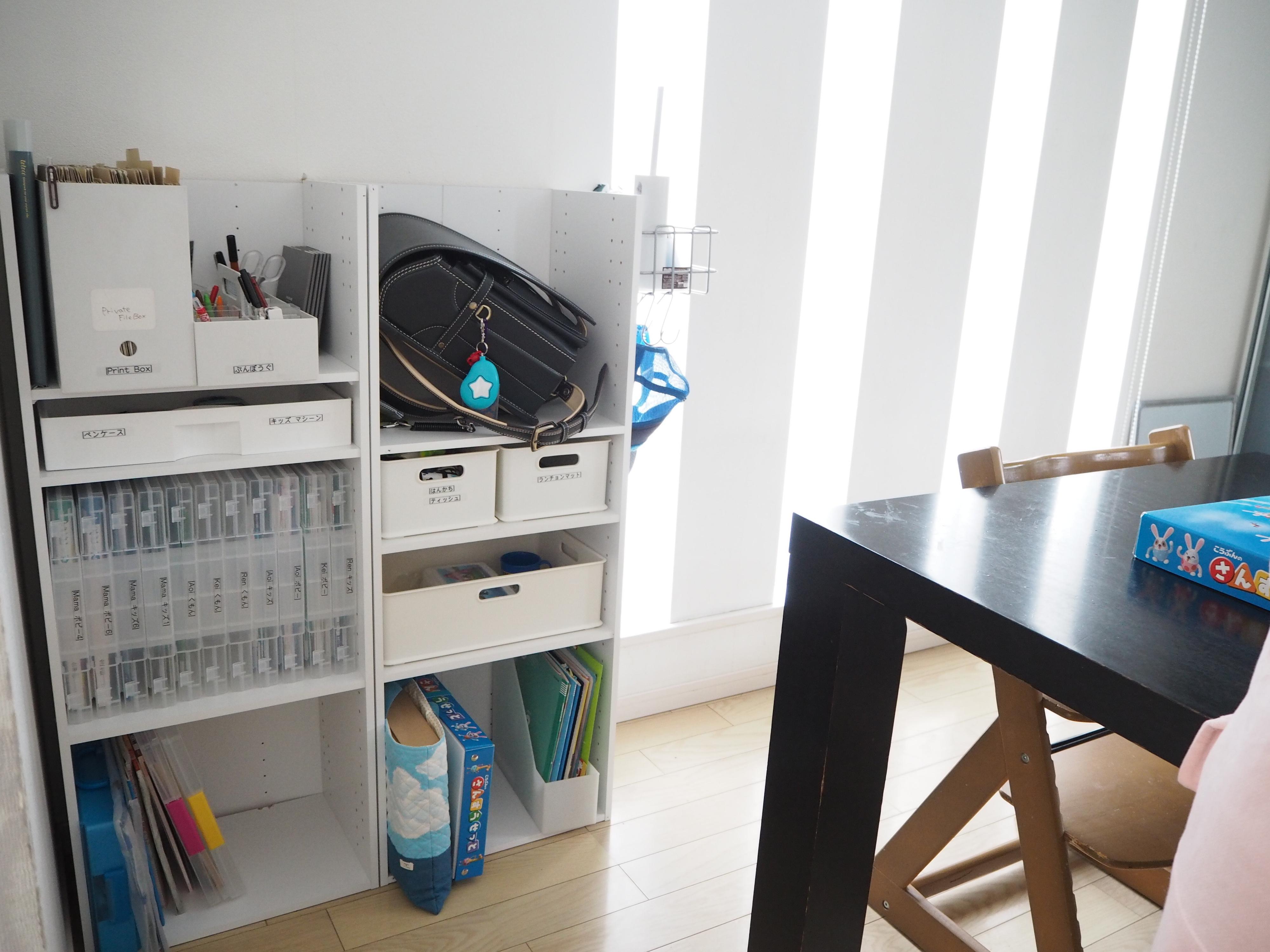 低学年や未就学のお子さんは、ママの近くが活動しやすいようで、宿題やお絵かき、通信教材などもダイニングテーブルやリビングでするお子さんが多いです。そんなとき、リビングやダイニングに置けて邪魔にならないカラーボックス(カラボ)は便利です。