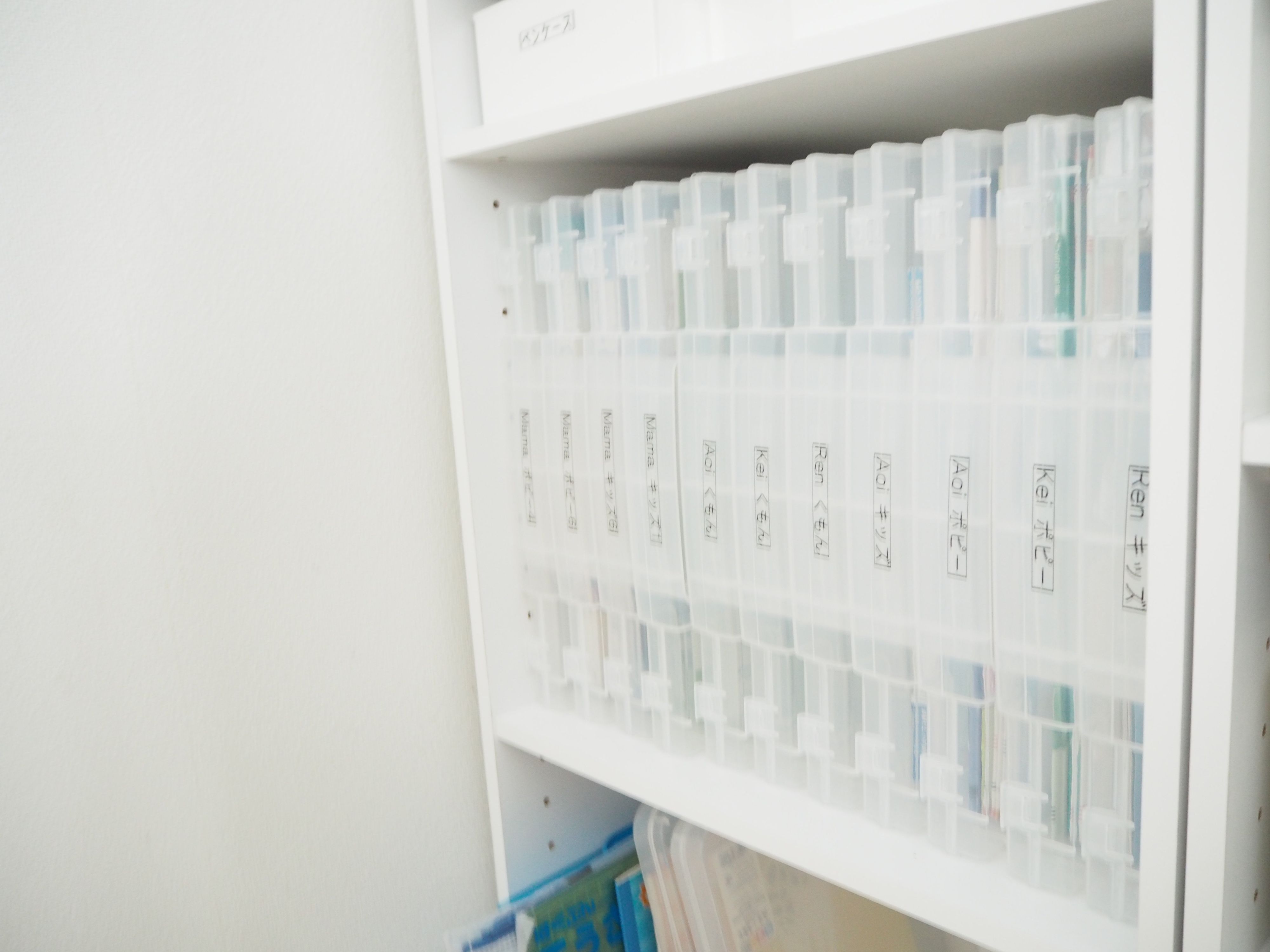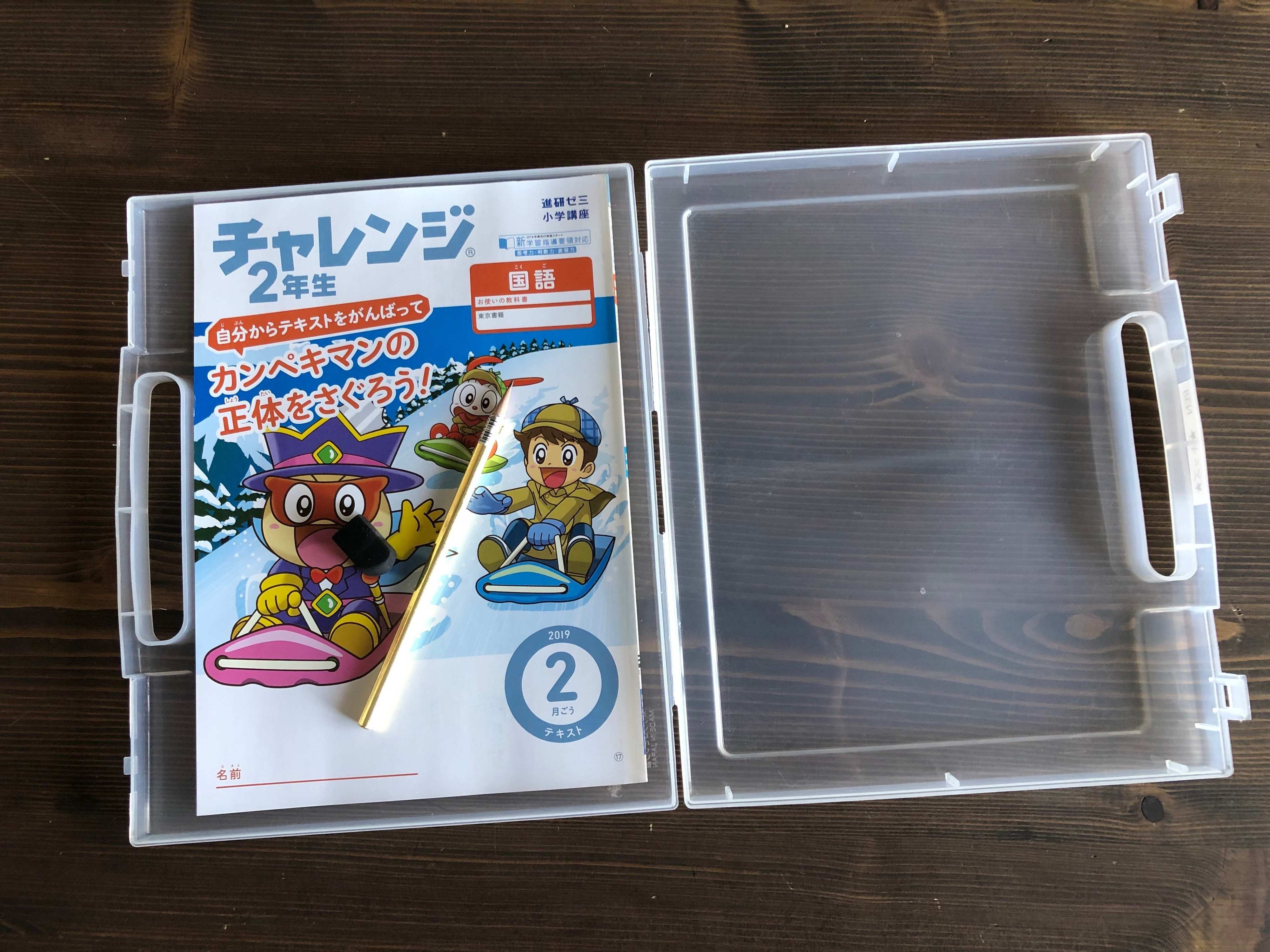 進研ゼミなどの通信教材は、さっと取り出して取り組むことができる仕組みにすれば、子どもたちのやる気もアップしやすいでしょう。そんなときは、ダイソーのファイスケース(100円)が便利。ニトリのカラボに11個がピッタリ収まります。