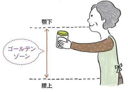 物が高い位置にあると、背伸びをしたり脚立に乗ったりしてバランスをくずし、思わぬケガをすることも。「かといって床に置くと今度はつまずく原因になります。よく使うものは、無理のない姿勢で出し入れできる、顎下から腰上までの位置に移動しましょう」(山口さん)