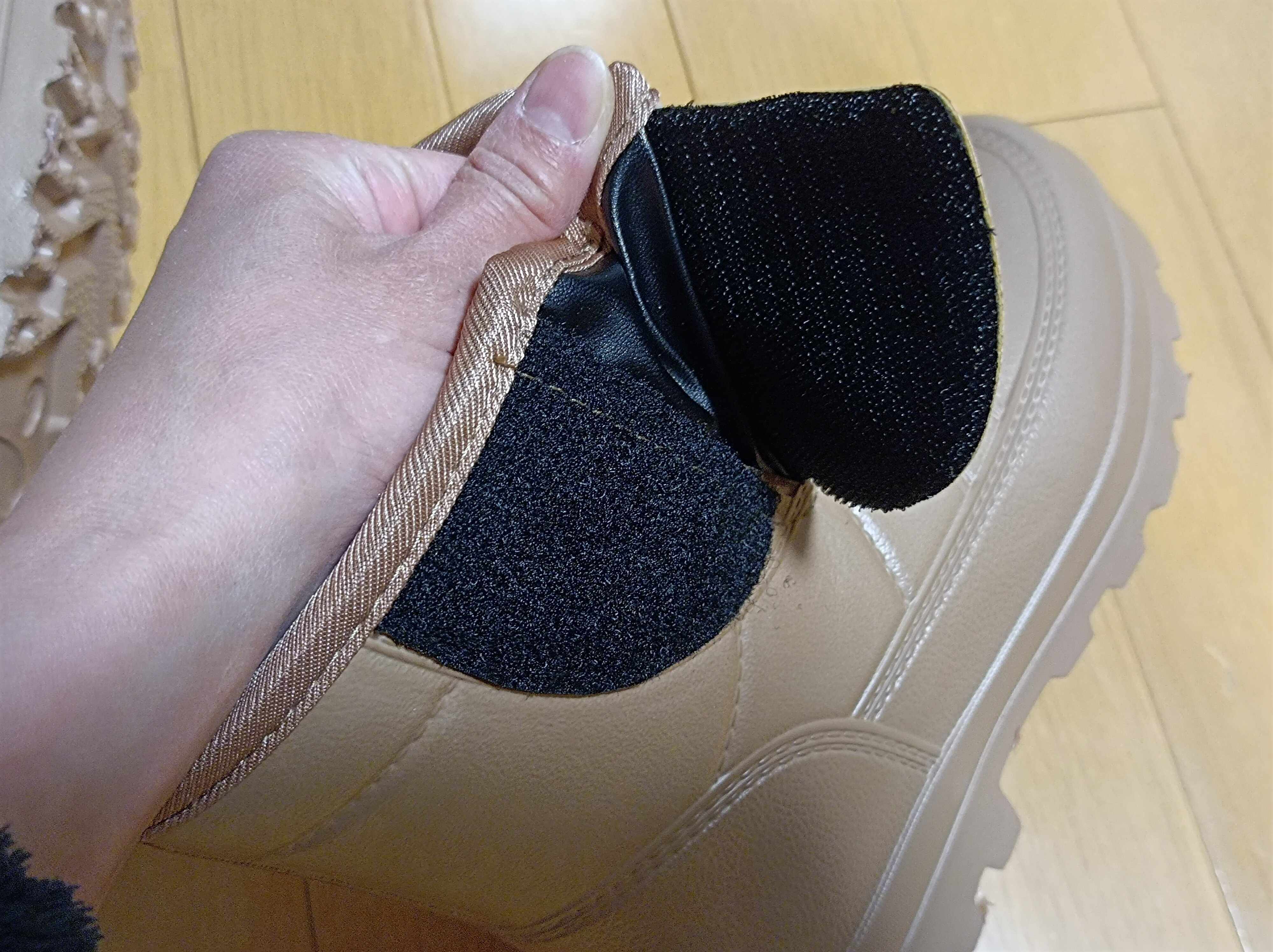 この場所が切れていない為、長さは約18cmと長靴のように高さはないのですが、調整もしやすくさらに雪や雨は横から入ってくることはないという作りになっています。