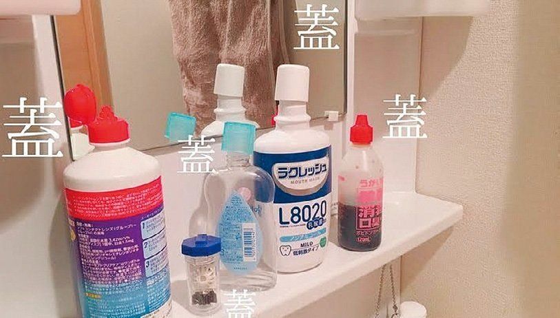 「歯みがきをしに行ったら蓋という蓋が全部開いてました。こんなときは『集合!』と夫を呼び、自分で後始末をしてもらうのが習慣。これを投稿したおかげで『蓋(ふた)』の漢字を覚えました(笑)」(gomi_sutero さん)