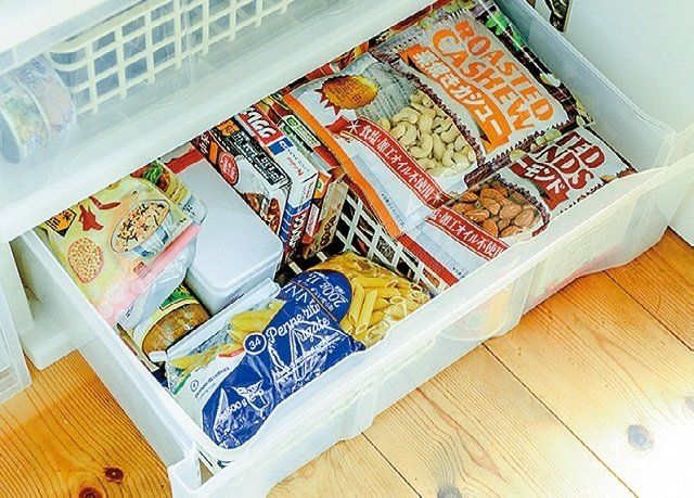 休日に夫が料理をしてくれるのはありがたいけれど、キッチンのあちこちに“夫専用食材〞を置かれるのも困る!食器棚の引き出し1段を夫専用にしたら、管理をお任せにできてストレスもなし。