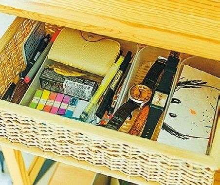 夫の行動を観察して、置き場所を工夫したのが素晴らしい。夫がついピッタリ収めたくなる、入れる物にジャストな大きさの入れ物を選ぶのがおすすめ。