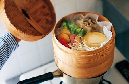 野菜や肉、卵を蒸して夕餉(ゆうげ)に。せいろは器としても活用