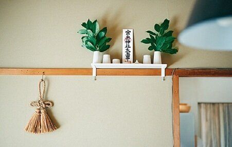 「目に見えないところにいる両親とつながっていたくて、和室の長押に小さな神棚をつくりました」。毎朝水を替えて手を合わせ、家族や友達だけでなく世の中の無事も祈っている。