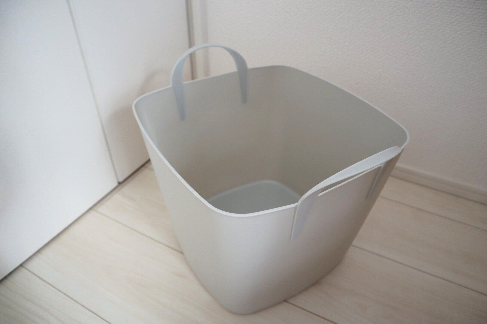 口が大きく、ポイポイ収納が可能なので、何も考えずに入れることができます。仮置きの場所なので、丁寧に入れる必要もありません。