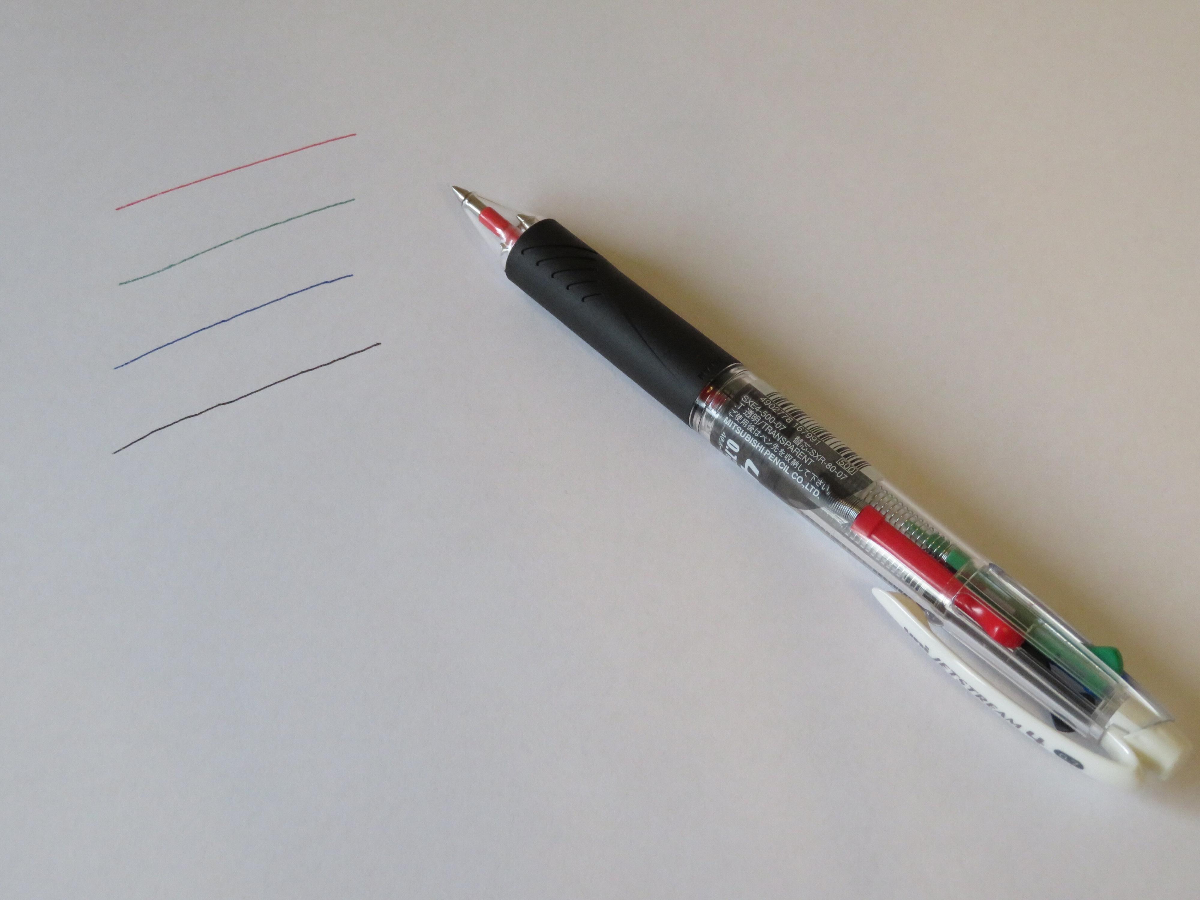 4色ボールペンはペン1本で4色出せるので、省エネかつ時短になり便利なのです。