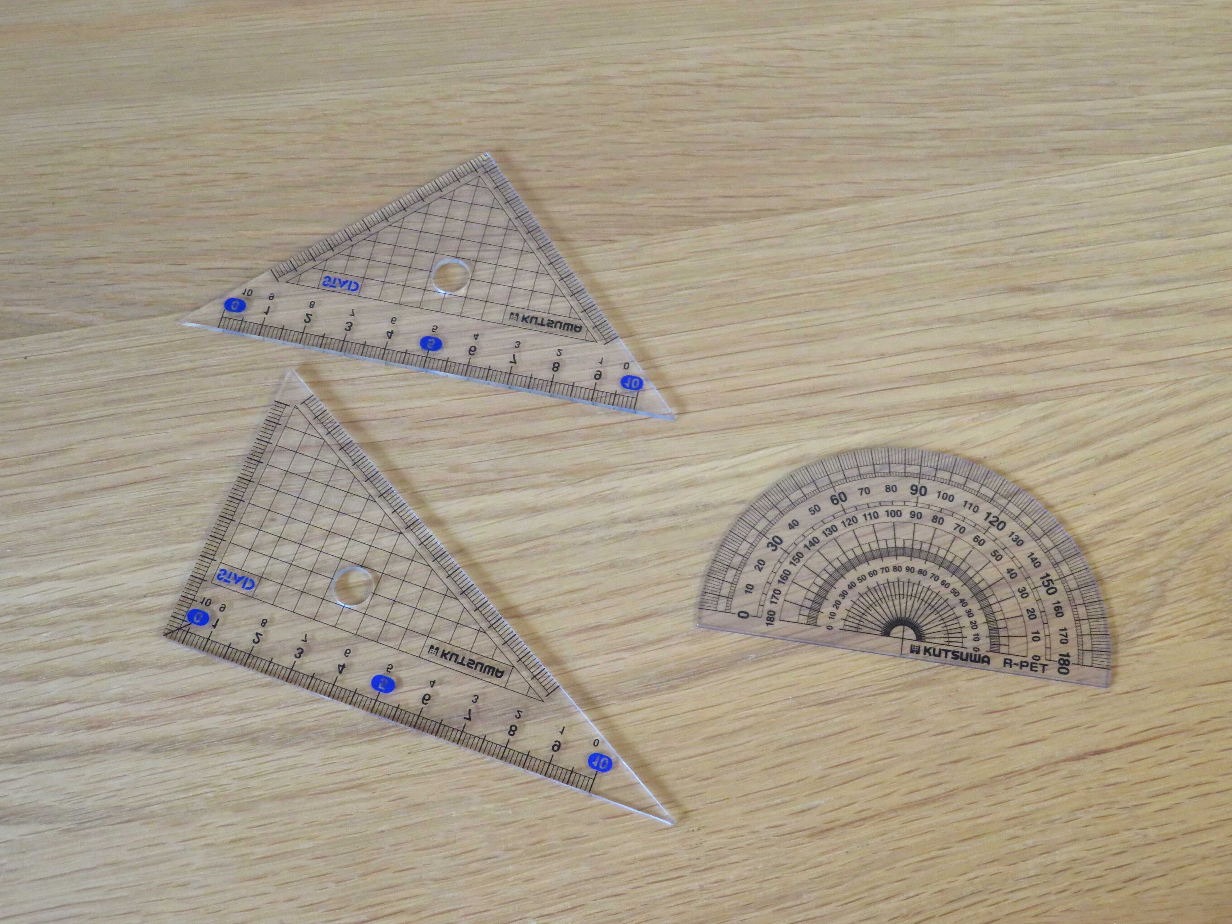 三角定規があればたいていの図形がスムーズに書けるので、持たせておきたいところです。