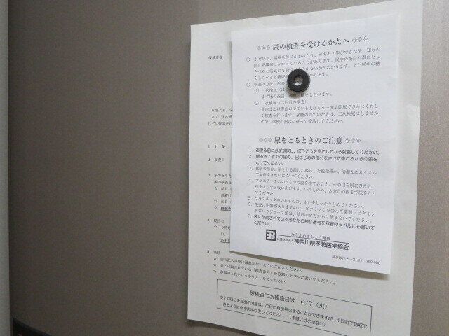 尿検査のお知らせは、普通検査日の2、3日前に配られます。