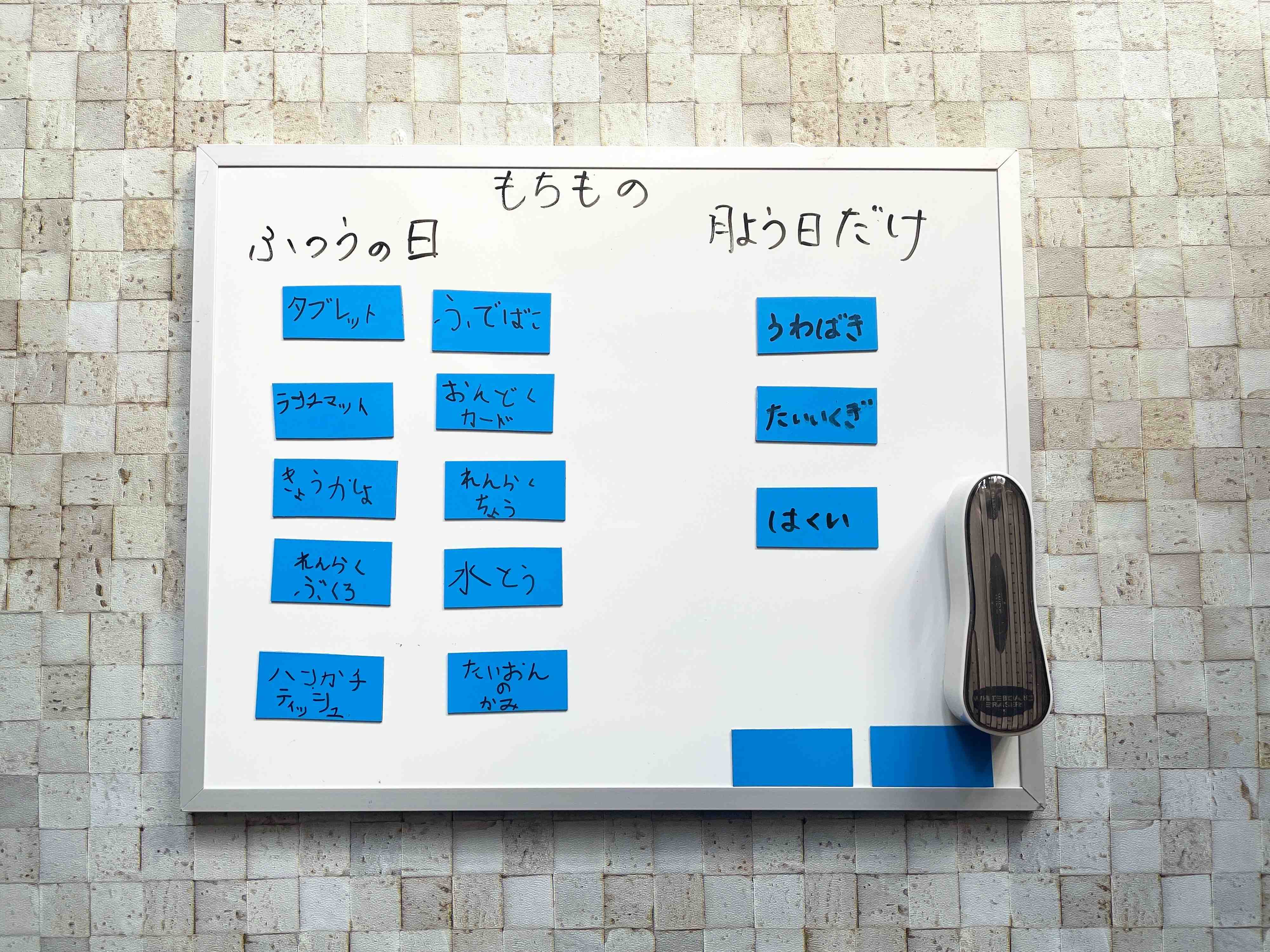マグネットシートには持ち物を子どもに記入させる