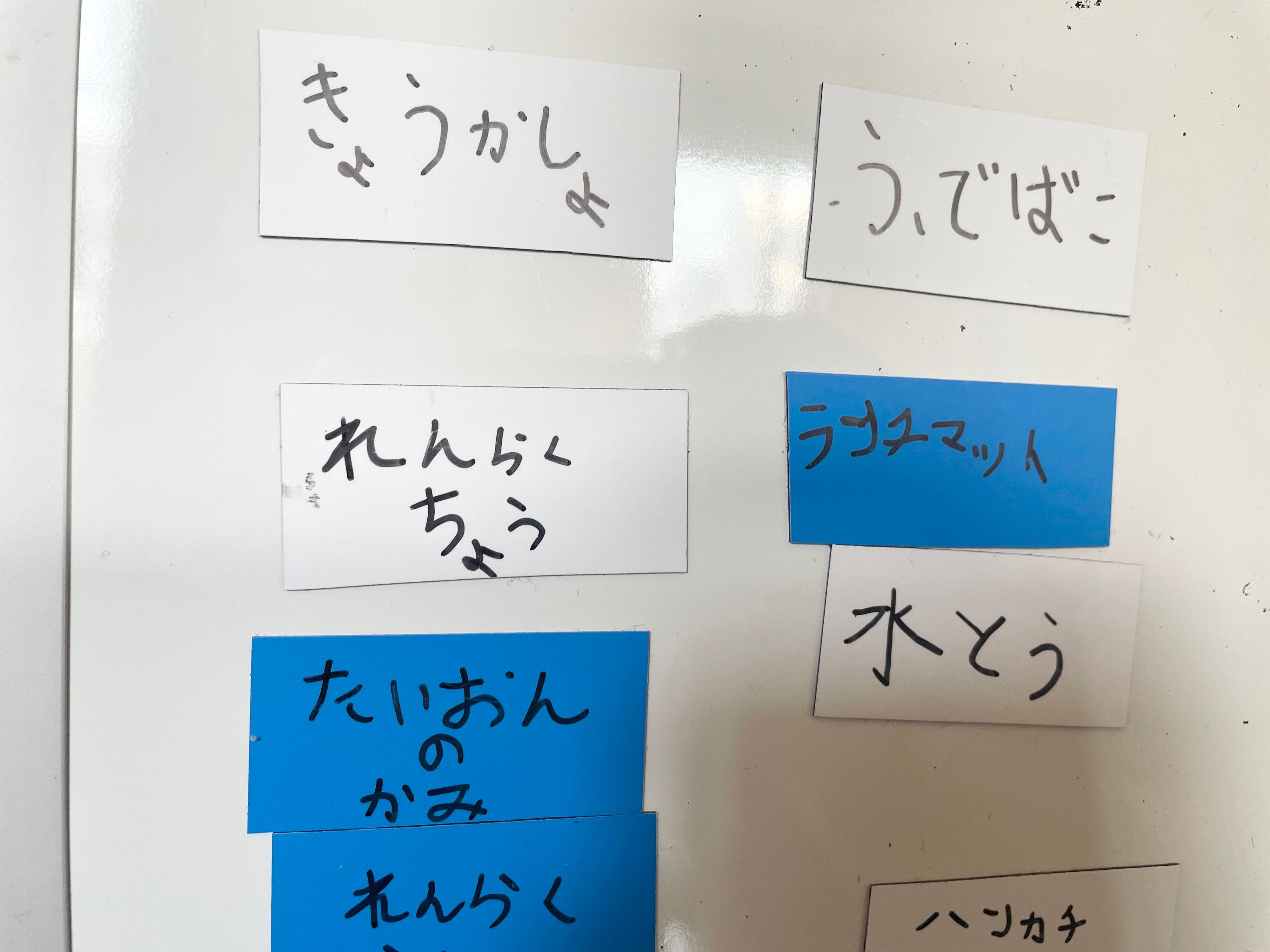 まずは、マグネットシートを切り、油性ペンで持ち物を書いていきます。