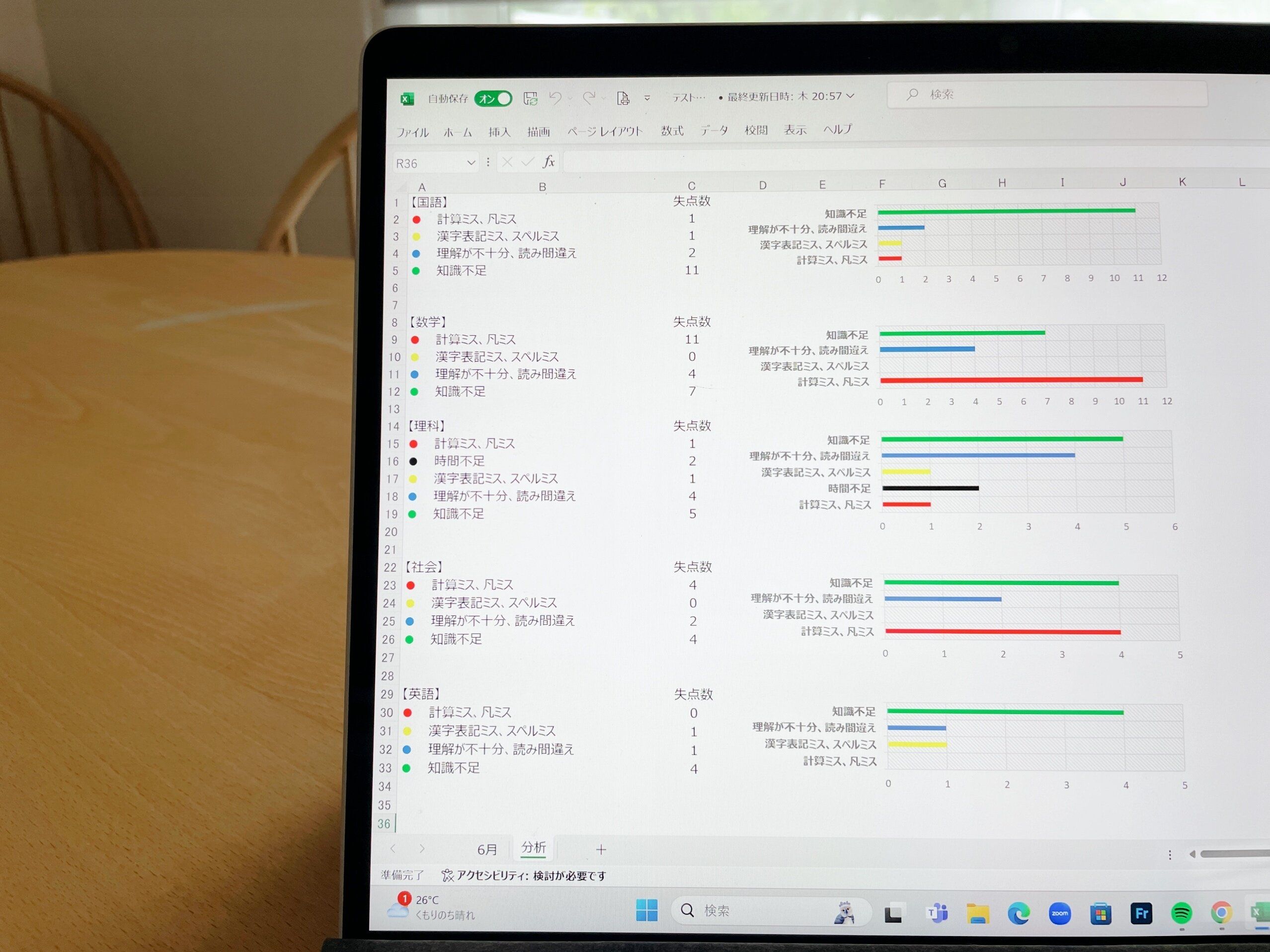 教科ごとに落とした理由を明確に視覚化したおかげで、取り組むべき教科と内容もクリアに。テストの点を落としてショックを受けていた娘もやっと笑うことが出来ました。