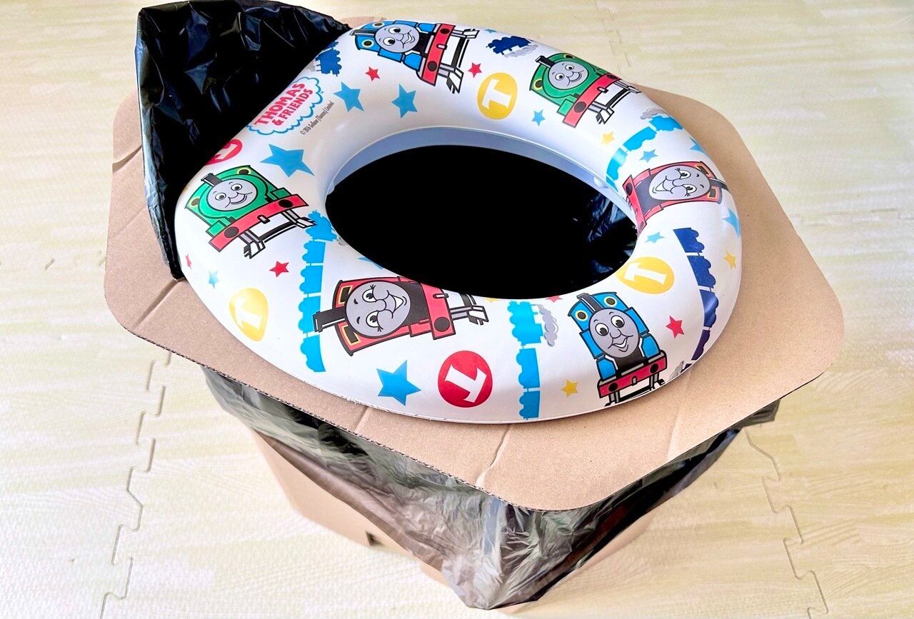 そんな時間にも心にも余裕がない現代人の防災準備は「できる限り日常的に使えるもので非常時に備えること」が大切だと感じます。わが家は、あと一歩でおむつが卒業できそうにない子どもの「トイトレ」と、「防災備蓄」を兼ねる段ボールトイレを用意しました。