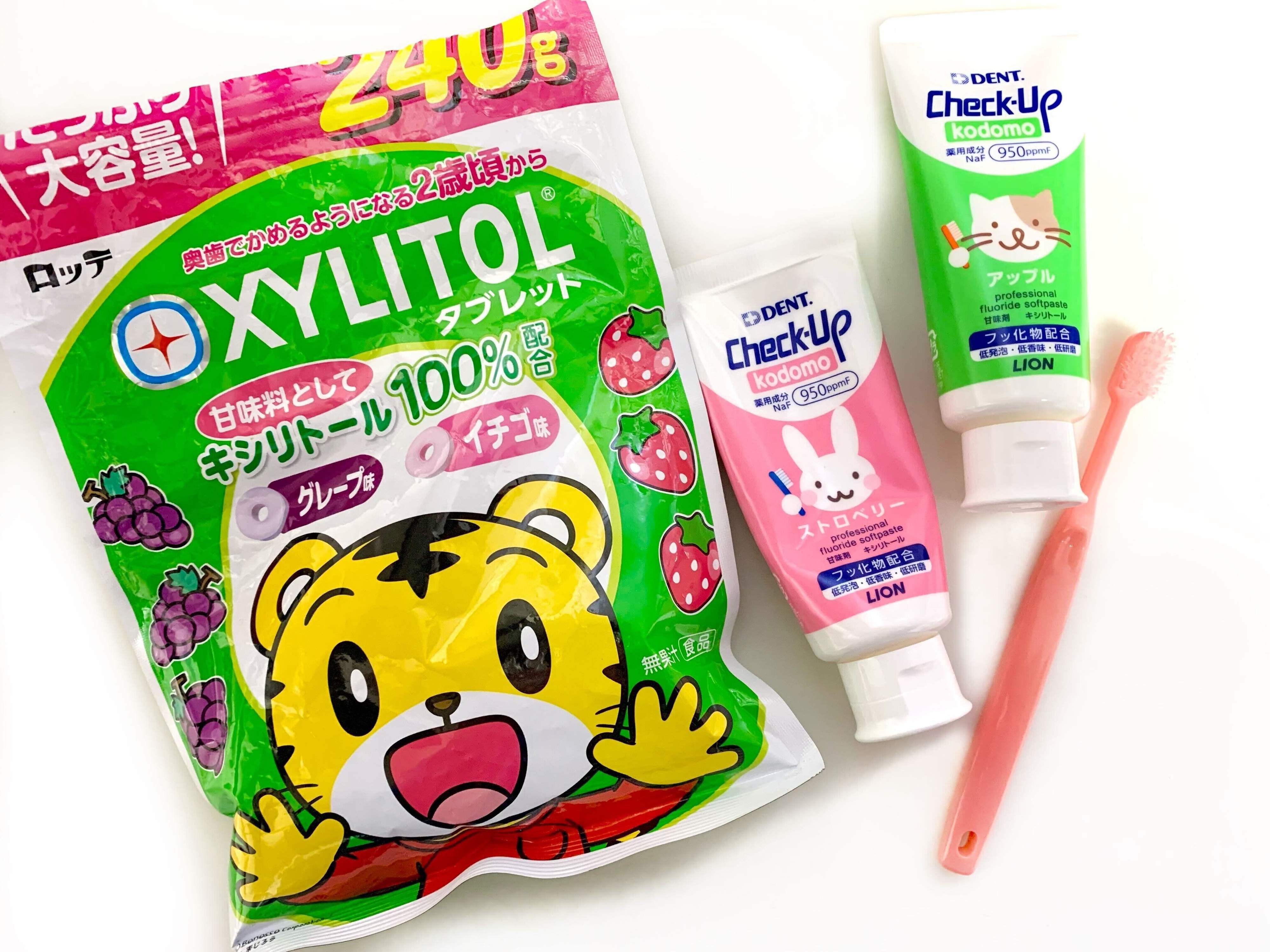 筆者は、歯みがき後にキシリトールタブレットを与えています。「キシリトール」は虫歯予防が期待できる成分。歯垢を付きにくくしたり、歯を硬くしたり、虫歯菌の活動を弱めたりするなどして、健康な歯を保ってくれます。