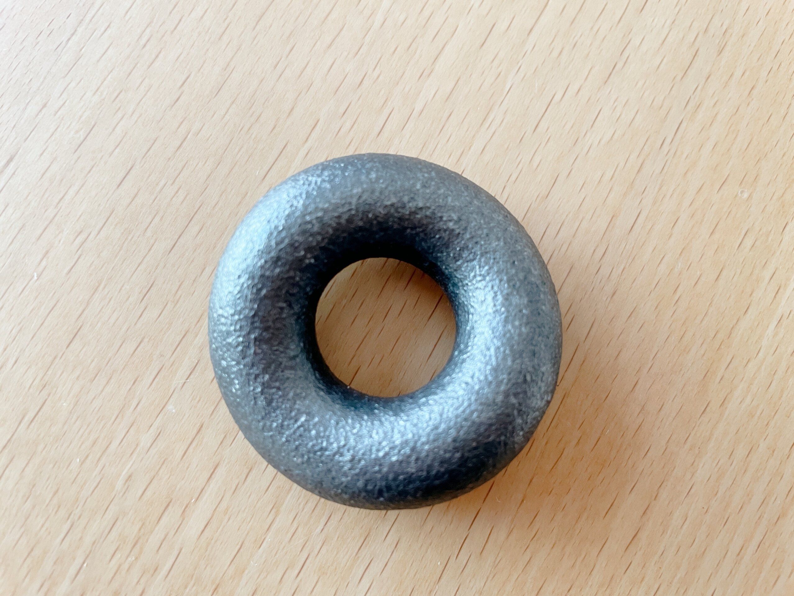 3つに勧められたのが鉄鍋や鉄玉。鉄鍋は調理しながら自然に溶けだす鉄を取り入れられることで有名ですが、扱いが意外と難しく過去鉄のフライパンを手放した経験があったため見送り。鉄玉を調べていて見つけたのが家事問屋の「てつまろ」です。湯沸かしやお味噌汁の中に入れる時に使おうと思うと、ポイントとなるのがさっと入れて取り出せるかどうか。紐をつけたり菜箸ではさんだり、掬い上げることができるドーナツ型なのが決め手となりました。