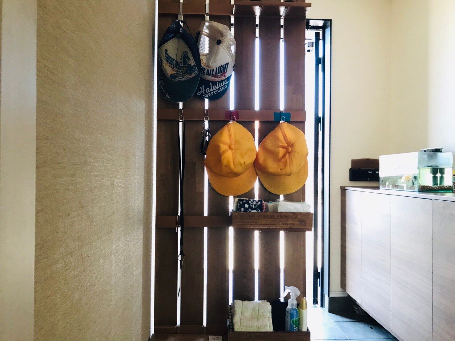 制帽の定位置も玄関です。