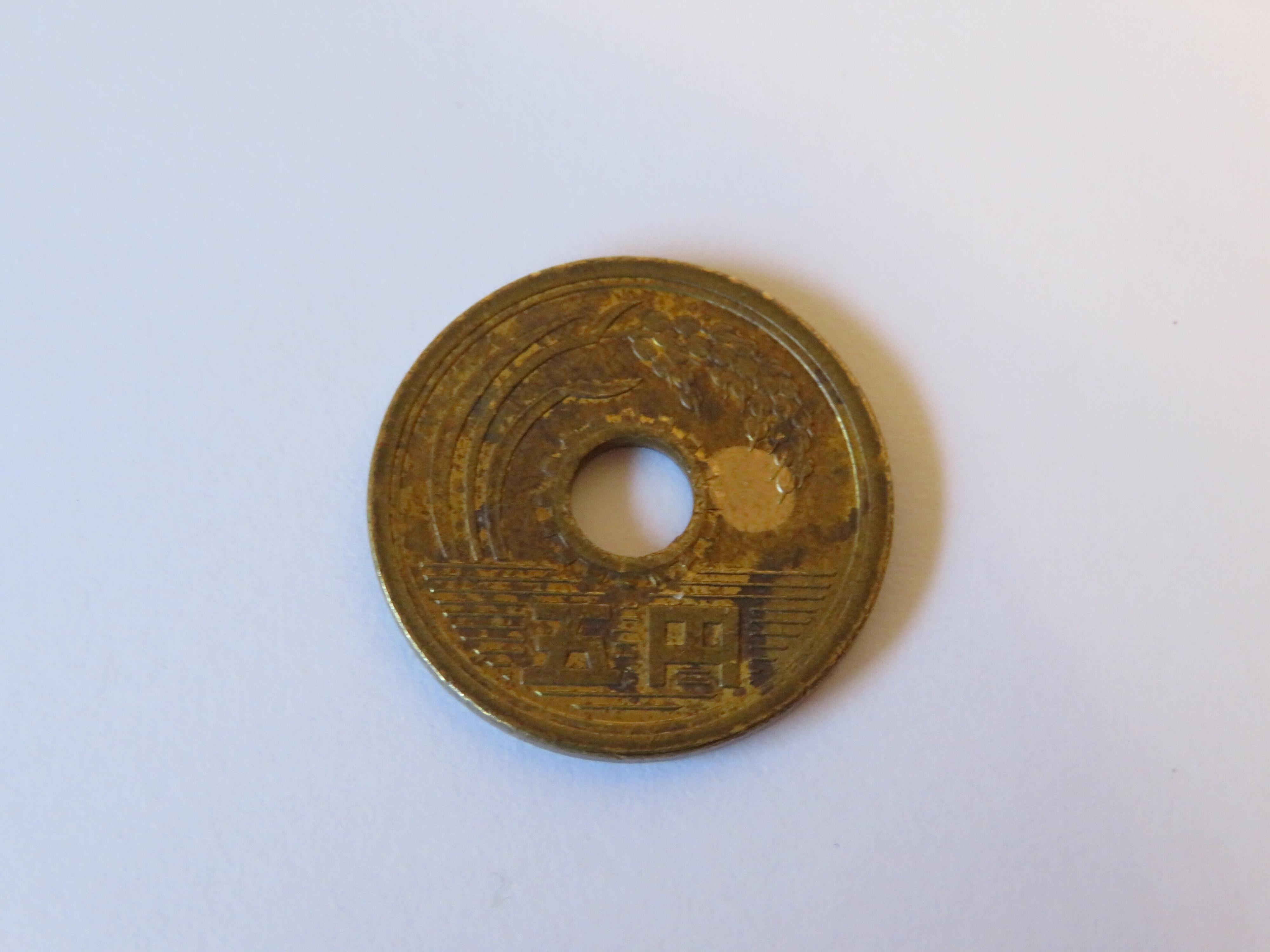 色が濃いもののほうがわかりやすいので、十円玉の次におすすめなのが五円玉。
