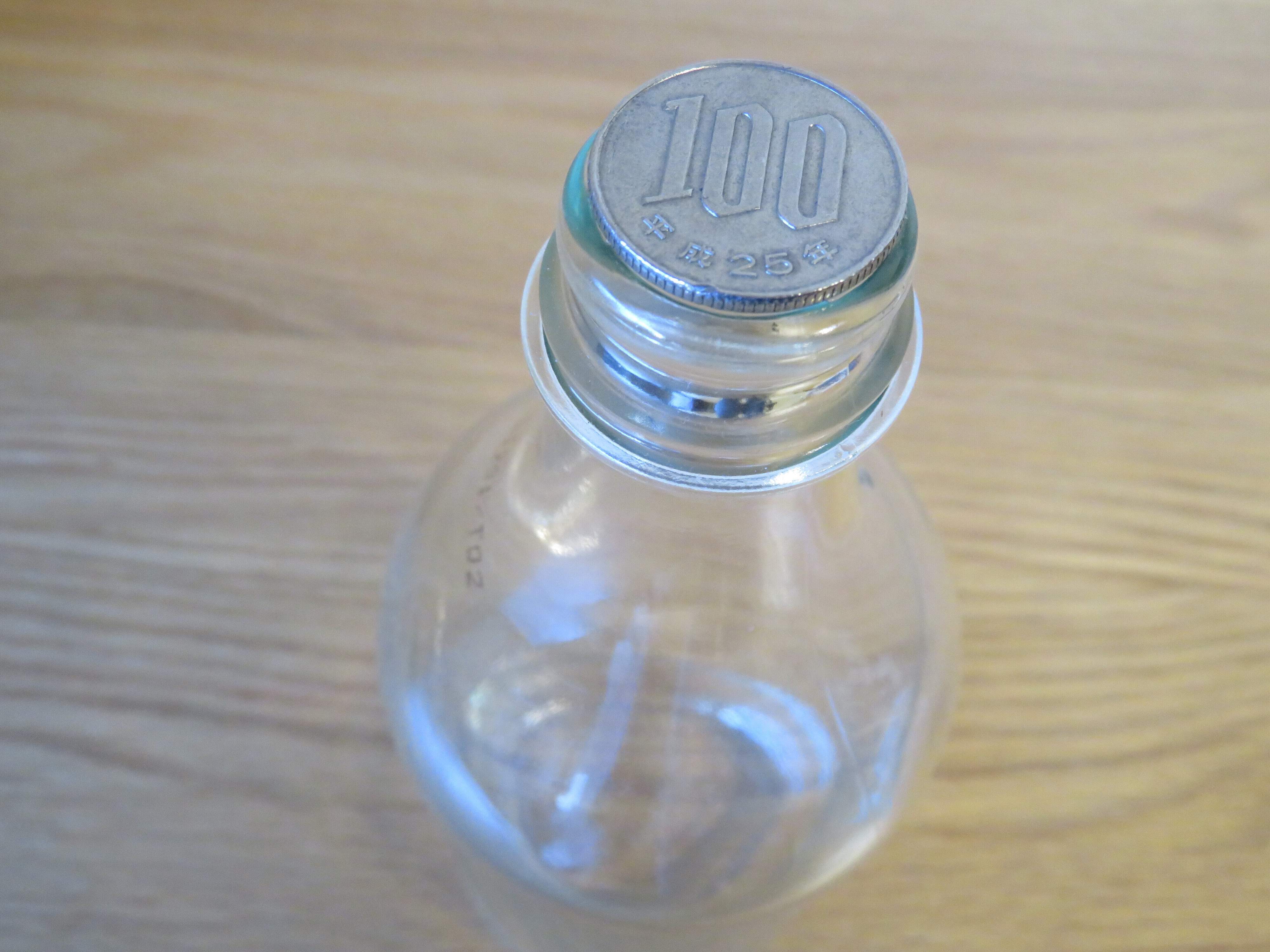 十円玉を軽く水でぬらして、瓶の口の上に置き密着させます。