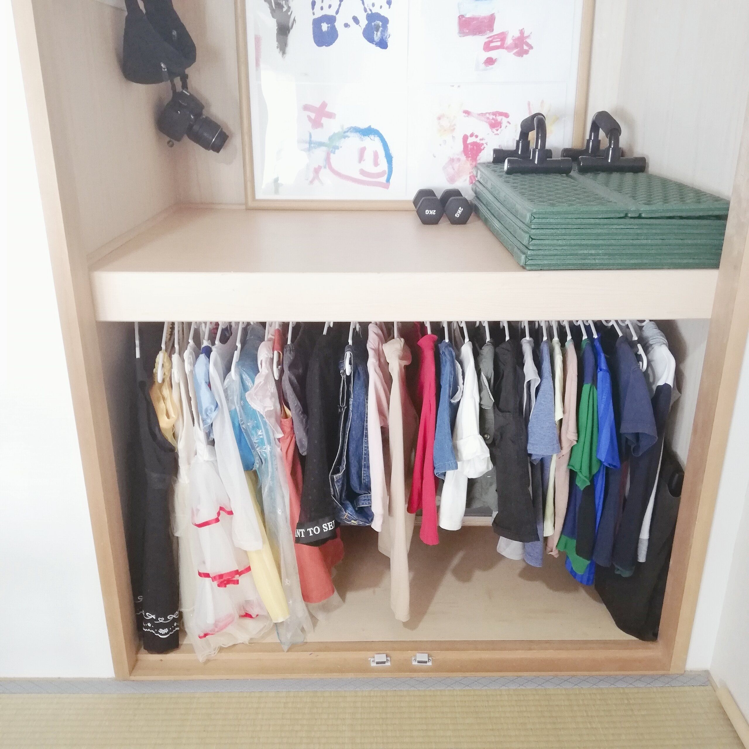 この方法を試したところ、洋服の総数は減ったものの、本人のお気に入りの服が増えたので、子どもにとっての洋服への満足度は高くなったかと思います。