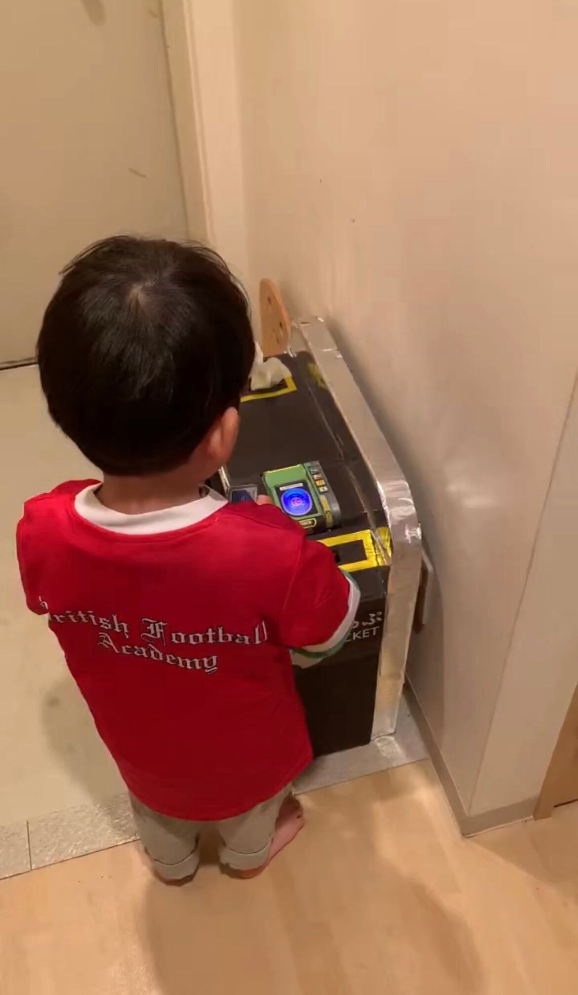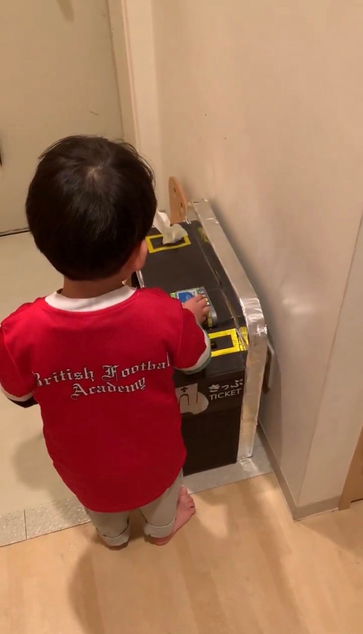 投稿されたのは、撮影時3歳の息子のために、段ボールで作った改札です。