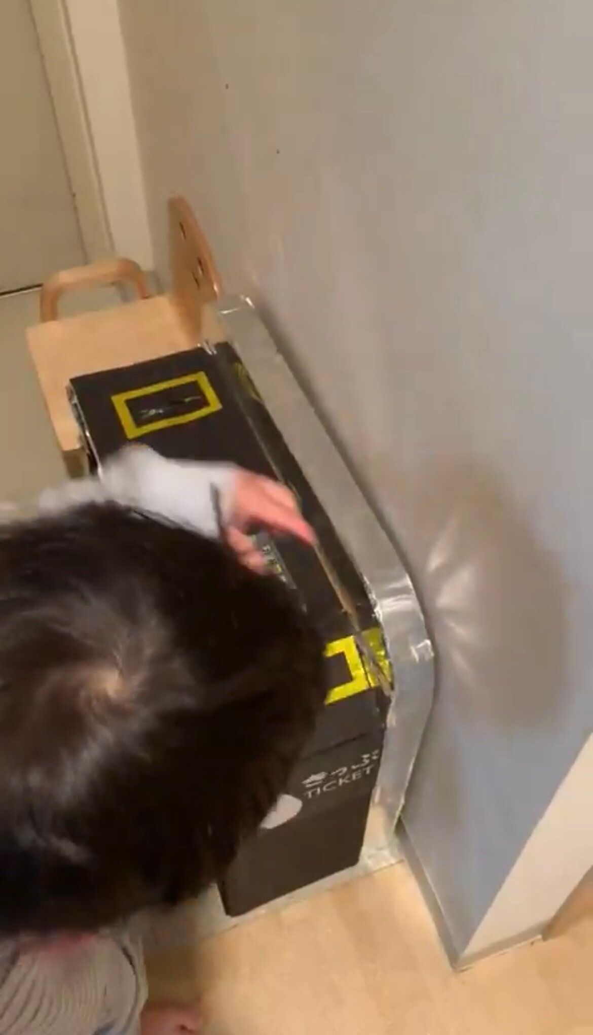 「ダンボールの改札を新設してから、小鉄の息子が速攻準備して保育園行けるようになって嬉しい」というコメントとともに投稿された動画がこちら。