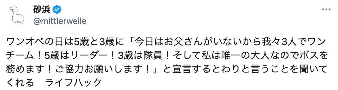 ワンオペ中、息子くんにはリーダー・娘さんには隊員を任命してお手伝いをお願いすると、スムーズにことが進むのだそう!