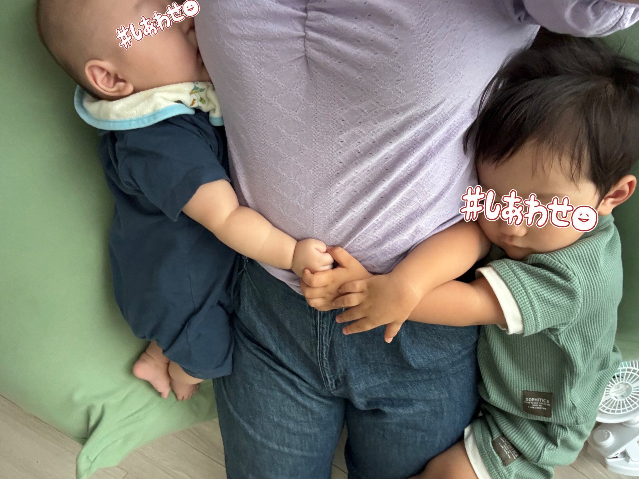 「動けないけど、とっても幸せな時間でした。2人の寝顔にすごく癒されましたね。それと、2人が同時に寝てくれたので『私も休めるボーナスタイムだああああ』と嬉しかったです(笑)」