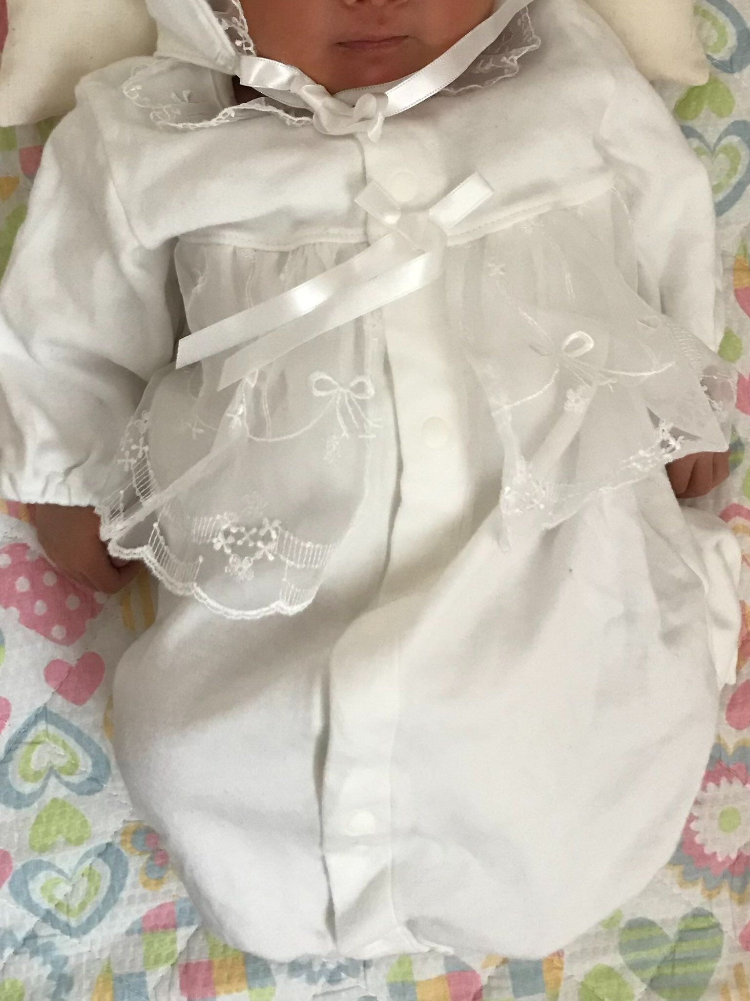 新生児のときに着ていた写真と比べて