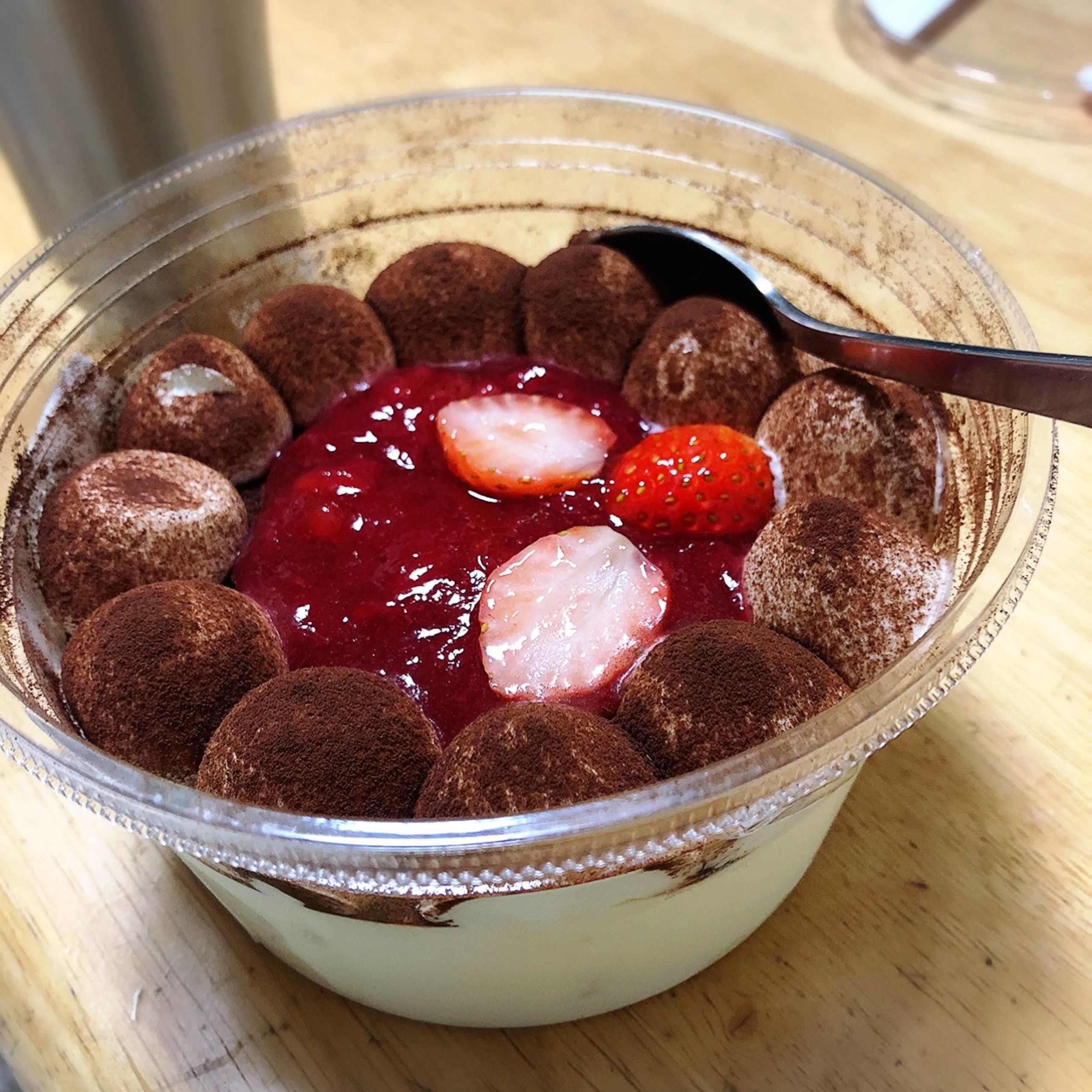 仕事帰りにお持たせを買ったついでに、超デカいちごティラミスを買ってしまった。