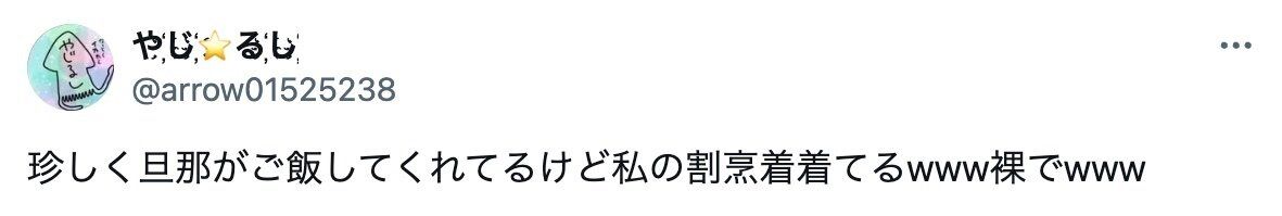 この投稿には、10万件ものいいねや「なぜ裸かっぽう着。透け感は料理には不向きなのにwww」「旦那さん最高」といったコメントが寄せられたほか、「はだかっぽうぎ」という造語まで誕生し、話題になりました。