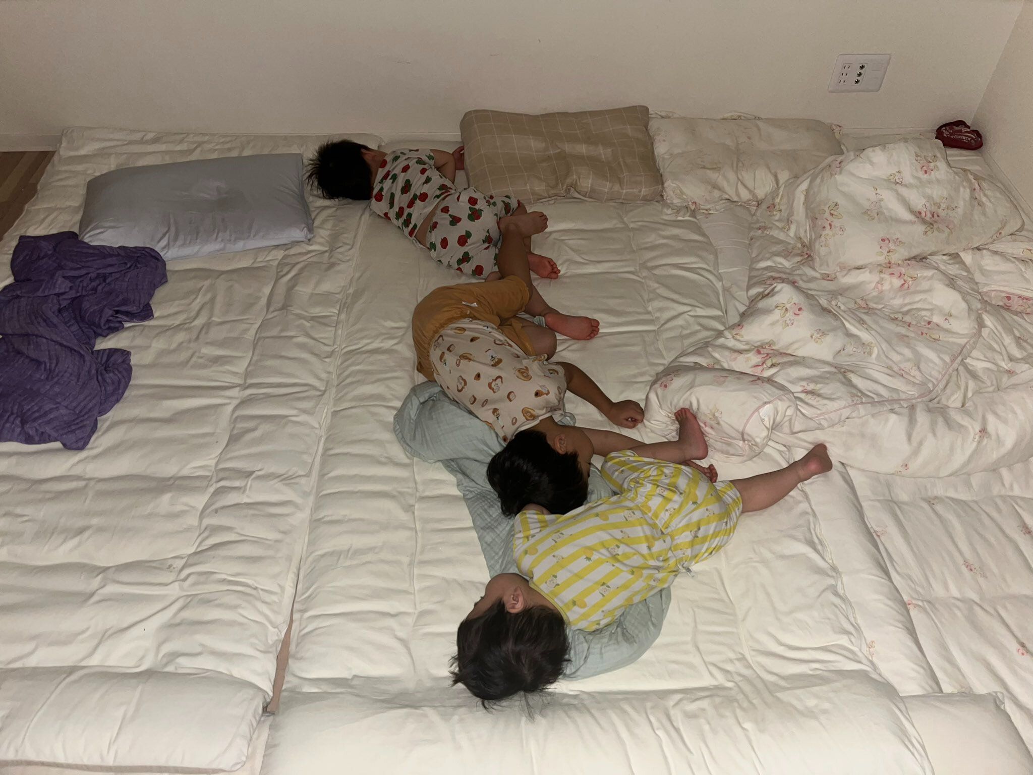 それぞれの布団で寝ていたはずの子どもたちでしたが、なんと全員がママの布団に集まってきています。