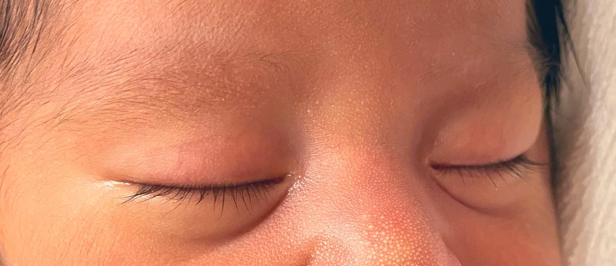 一般的な赤ちゃんのまつげよりも、すでに長くしっかり生えています。