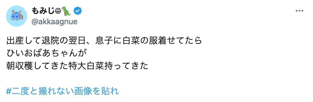 もみじさんが投稿したのは、「二度と撮れない画像を貼れ」とハッシュタグをつけたもの。