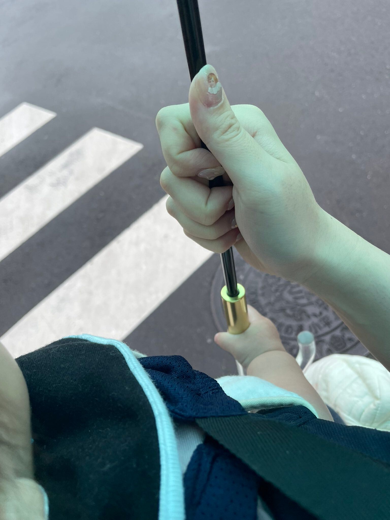 写真に写るのは、小さな手で傘の柄をしっかり持ち、ママを支えているような娘さんの姿。