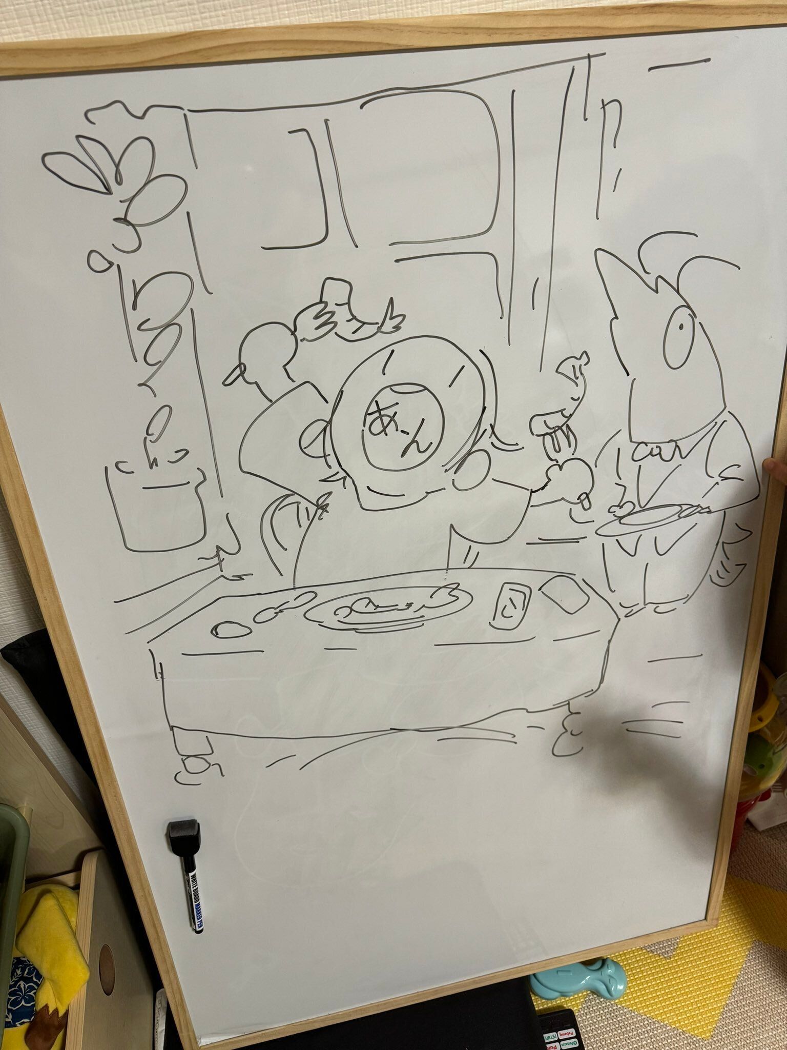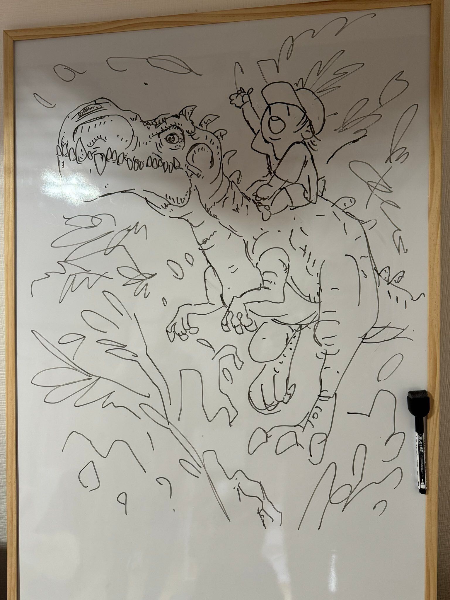 ホワイトボードに描かれた夫の“落書き”が驚きの躍動感!ハイレベルすぎて「消せなくなるやつ」