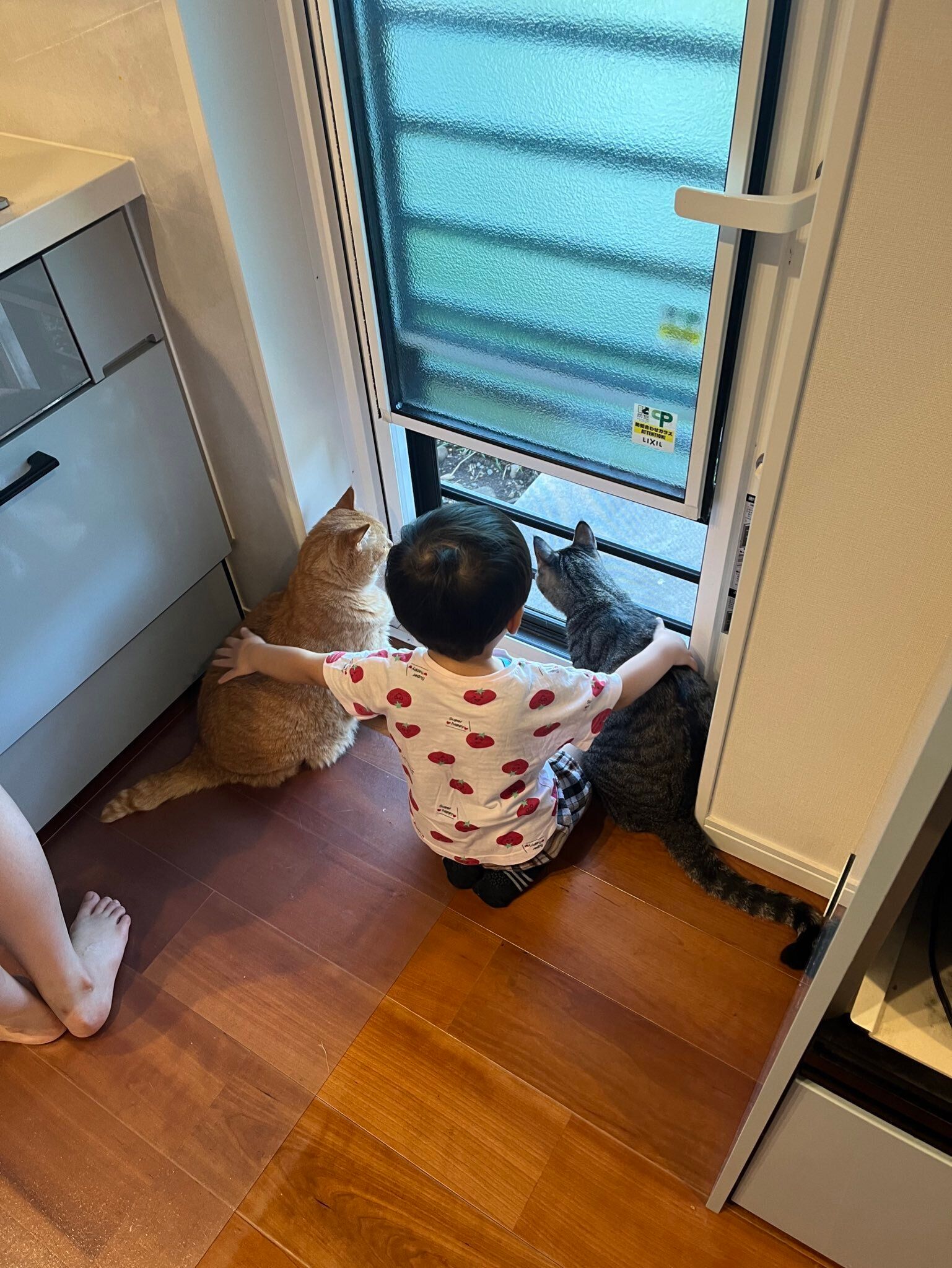 今回の投稿以外の場面でも、度々窓の前に集合している様子が紹介されている猫ちゃんとお子さんたち。