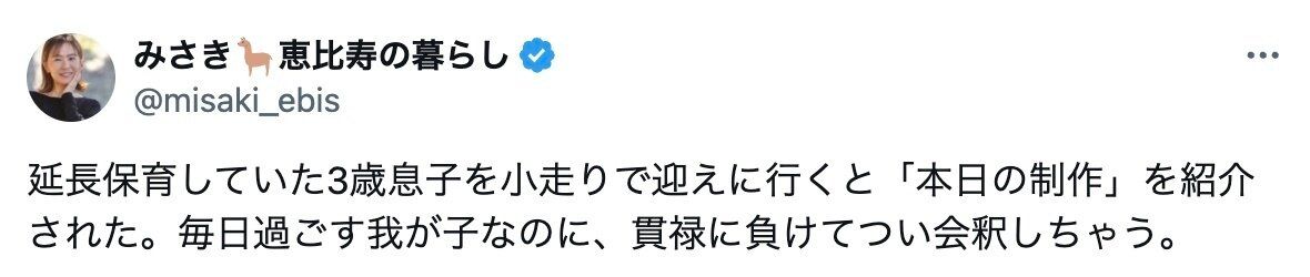 みさき恵比寿の暮らしさんがXに投稿したのは、3歳の息子くんを保育園に迎えに行ったときのこと。