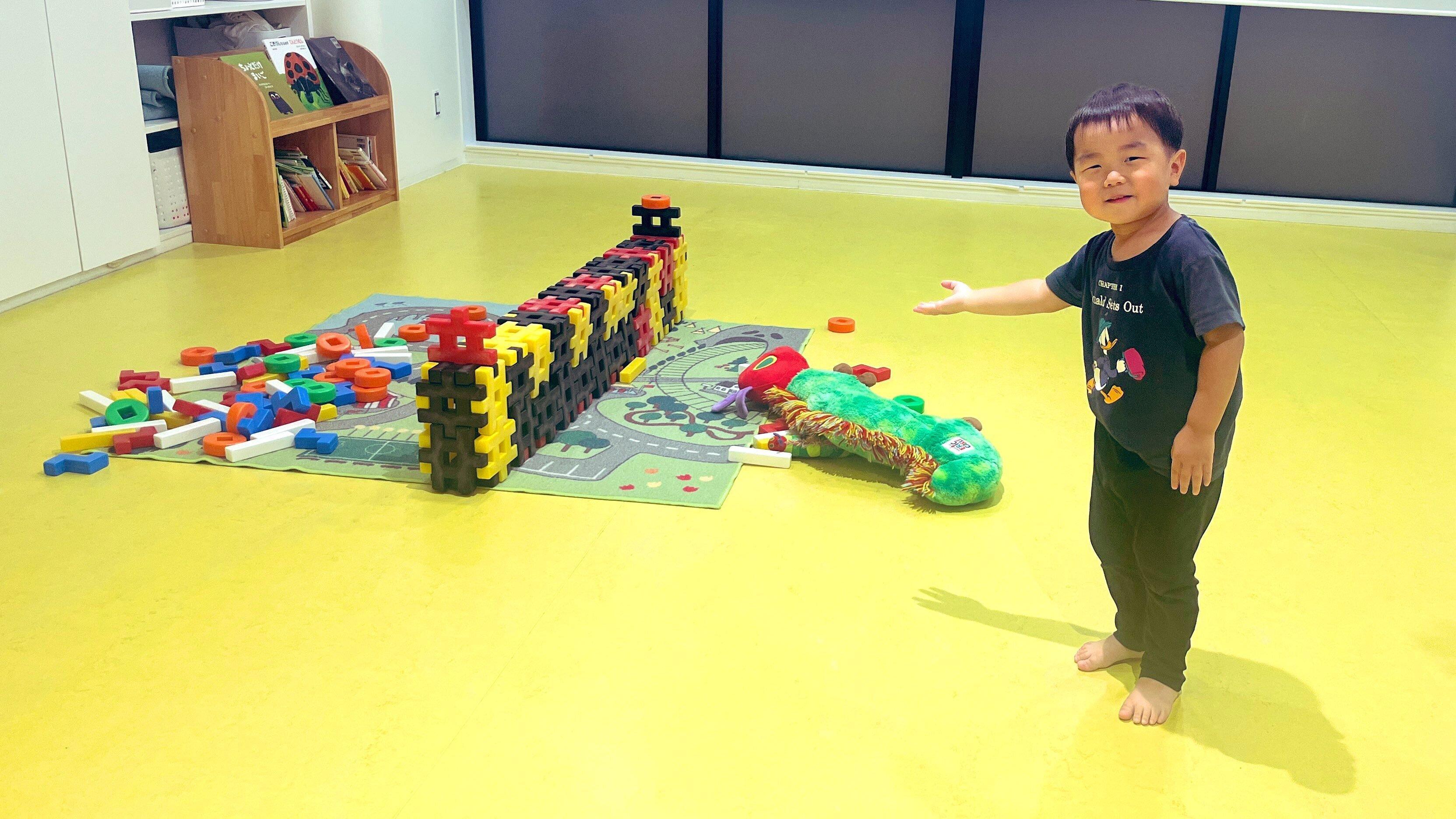 「日々ブロック遊びをやっているわけではありません。通常の集団保育が終わったあと、のびのびと集中してひとり遊びしているようです。家では姉、保育園ではお友達のペースに合わせるタイプのため、ふだん自分のやりたいことをじっくり取り組む機会があまりなく。月に数回ある延長保育時ならではの、先生の手厚いフォローあっての大作です。保育園様様です」