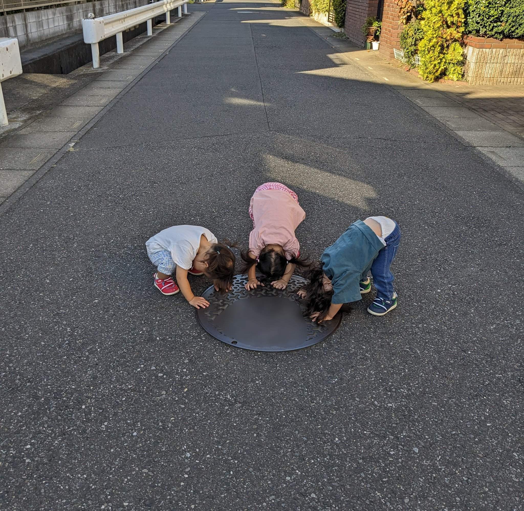 3人が同じタイミングで同じことをする「三つ子シンクロ」。そのシンクロが、まさかマンホールの上で起こるとは、ママもきっとびっくりしたことでしょう。マンホールには、子どもを惹きつける不思議な魅力があるのかもしれません。