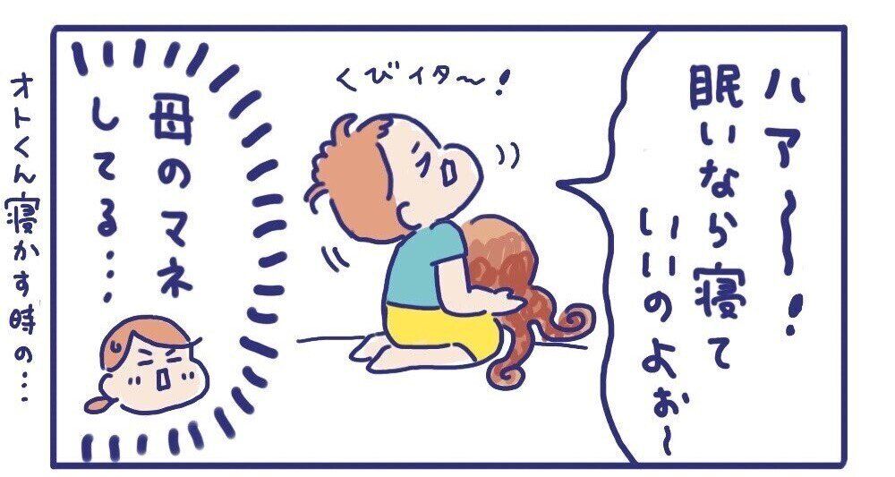 実はこれは、みゆきさんが次男のオトくんを寝かしつけるときのマネ。「くびイター!」というひと言がなんともリアルです。