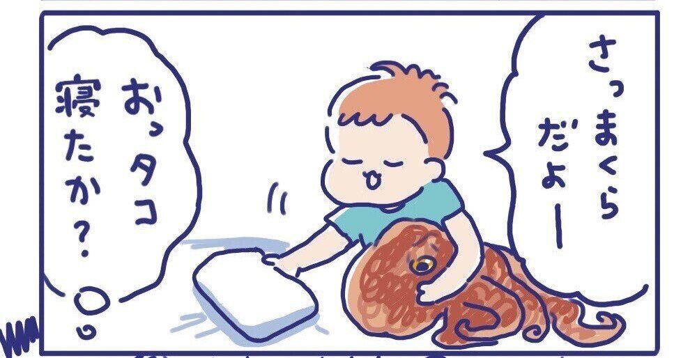 タコのぬいぐるみを寝かしつけて満足したおかげで、結果的にアニくんもすんなり眠れたんですね。アニくんもみゆきさんも、寝かしつけお疲れ様でした。