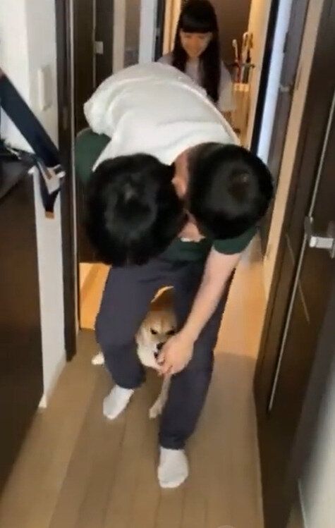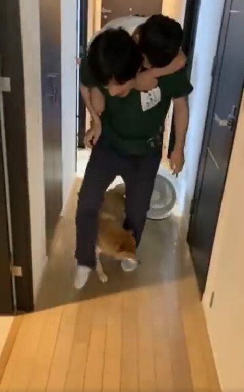 「おはぎにとっては、初めての出会いでした。そんななかで甥が私におんぶをせがんできたので、おんぶしている状況です。おはぎにとっては、初めて会う甥が私と仲よくしてるのが嫌だったんでしょうね」