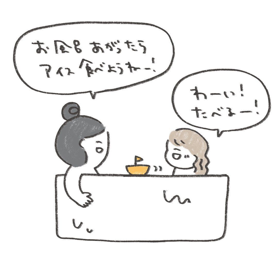 「お風呂あがったら、アイス食べようねー!」とアイスを食べる約束をしたようです。