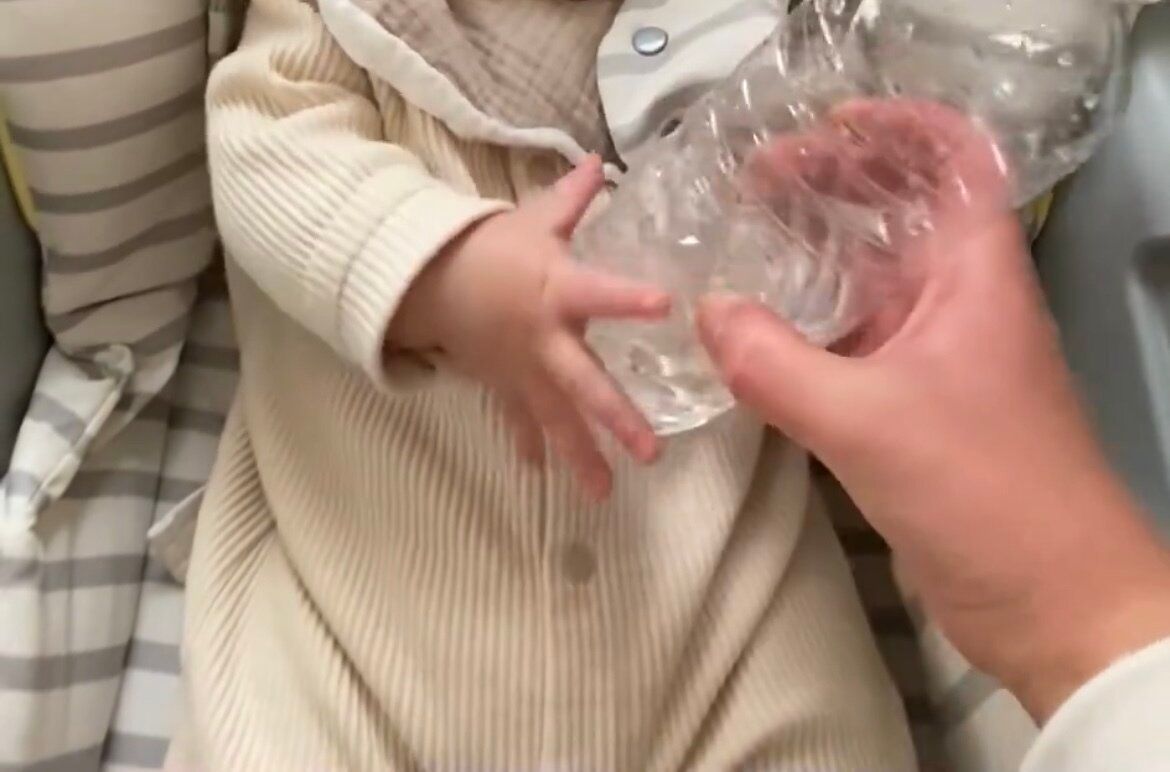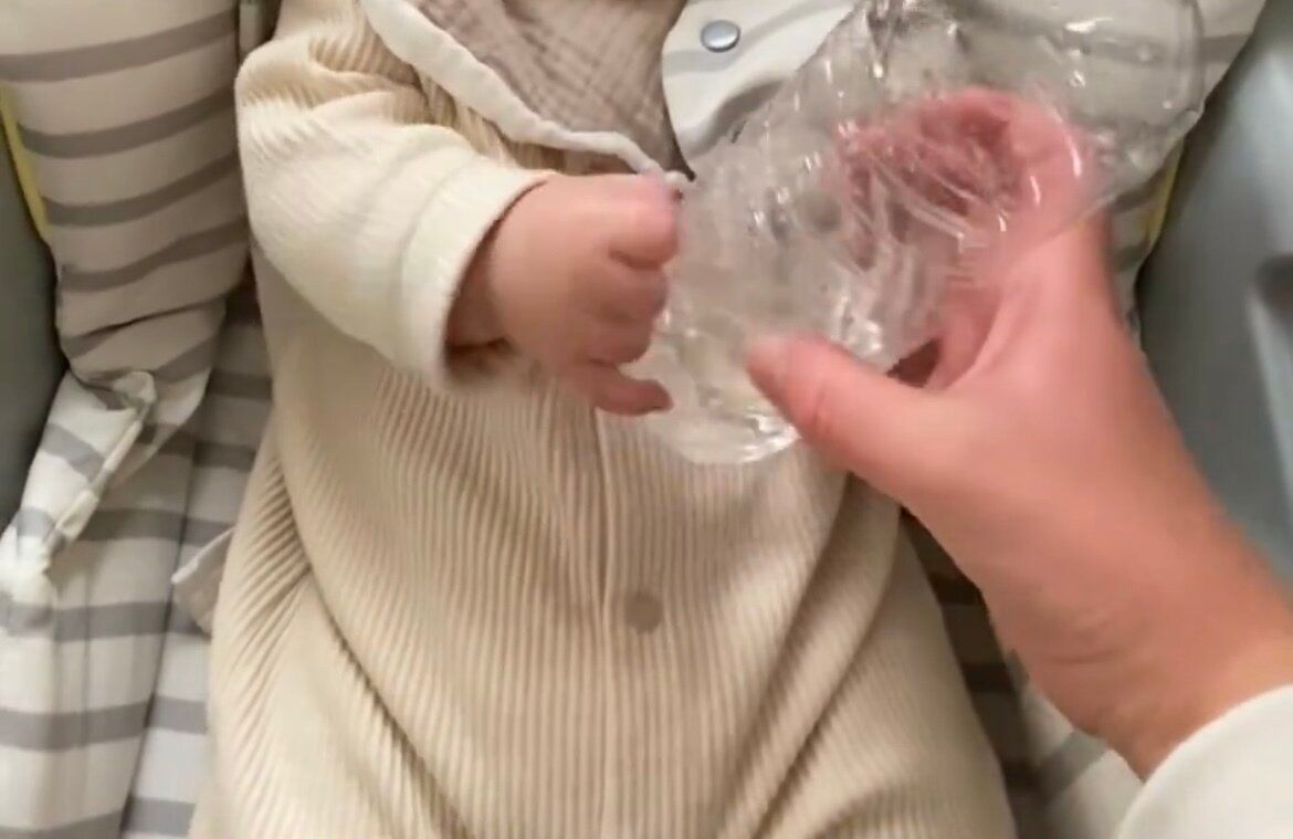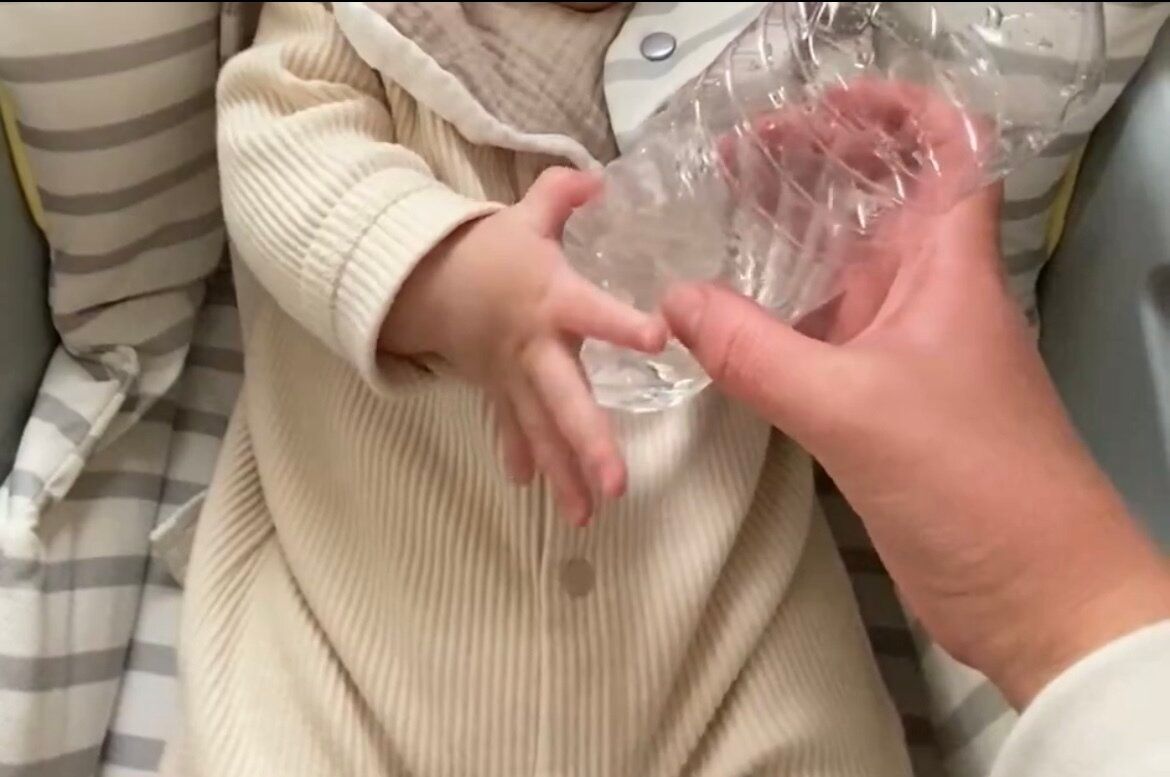 ママの真似をしてペットボトルを掴もうとする息子が可愛すぎると話題に。2.8万件のいいね集まる