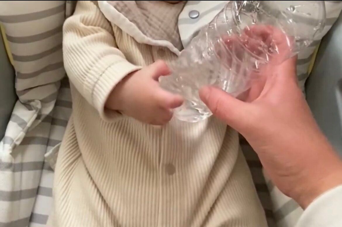 ペットボトルのカシャカシャ音が大好きで、自分でもペットボトルを掴もうとしますが……。