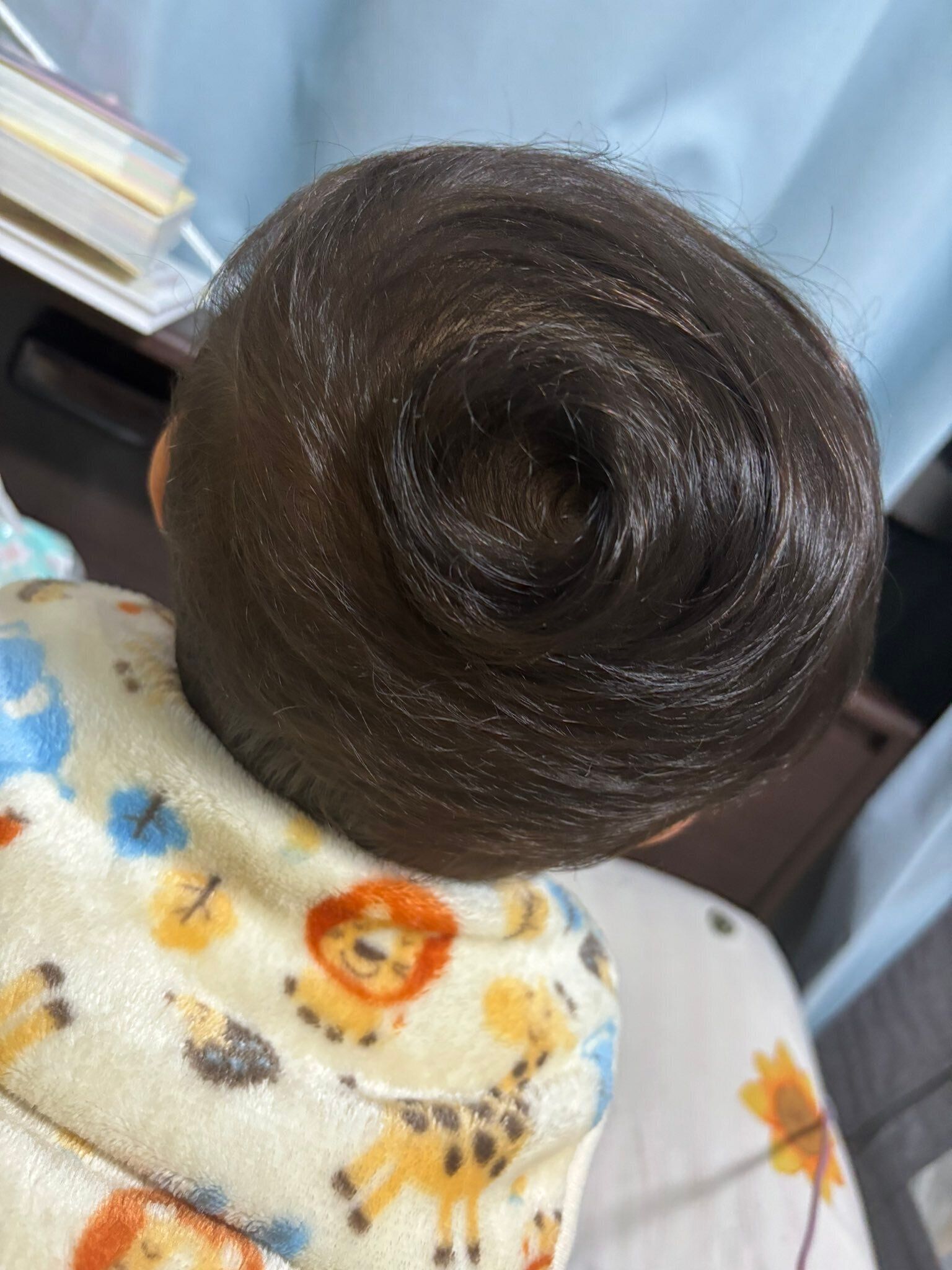 息子さんの頭に出現した台風の目。赤ちゃん時代すでにあった兆しは、時間の流れとともに立派なものへと成長しました。今後の発達具合も楽しみですね。