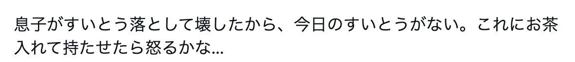息子くんが水筒を落として壊してしまい、代用品を用意したのですが……。