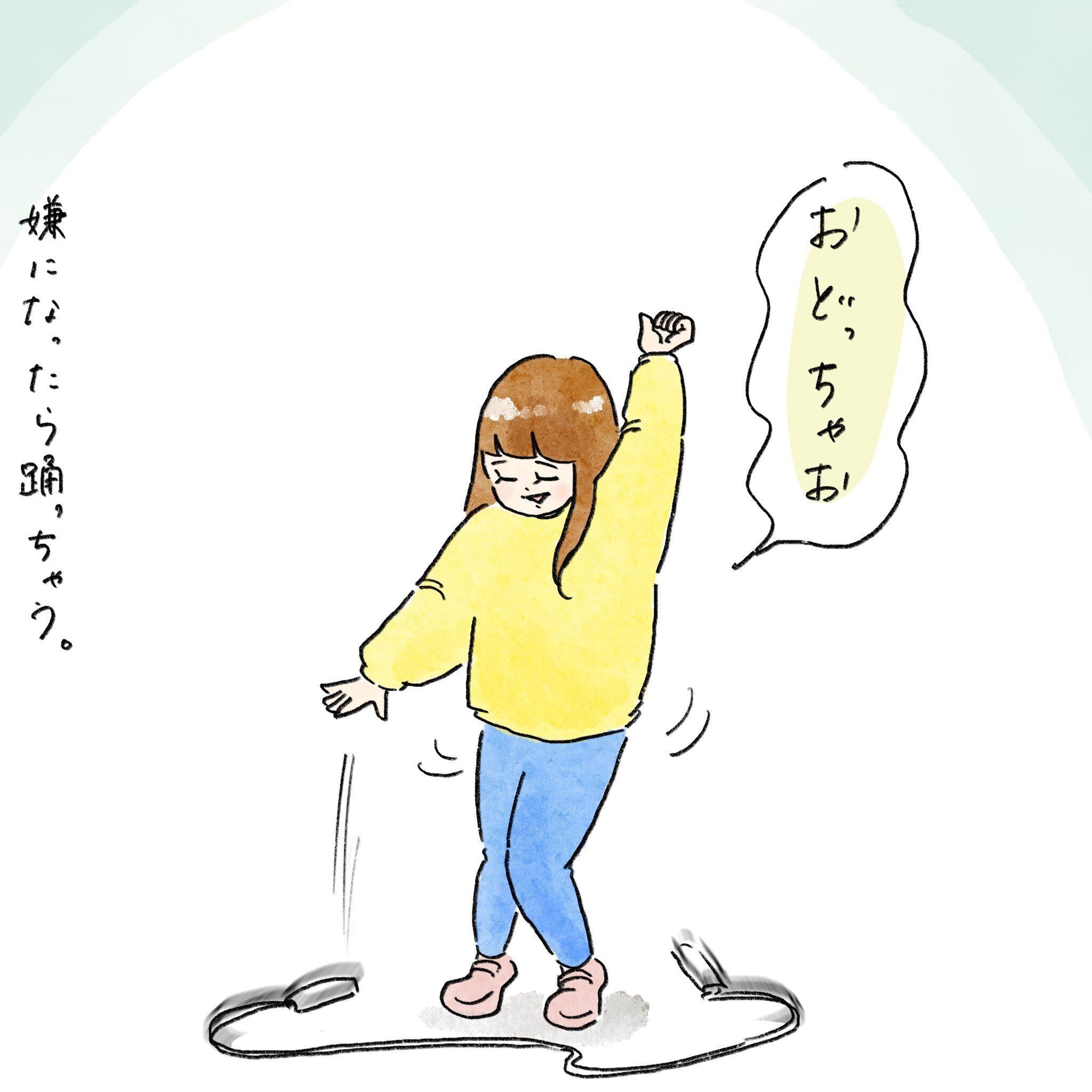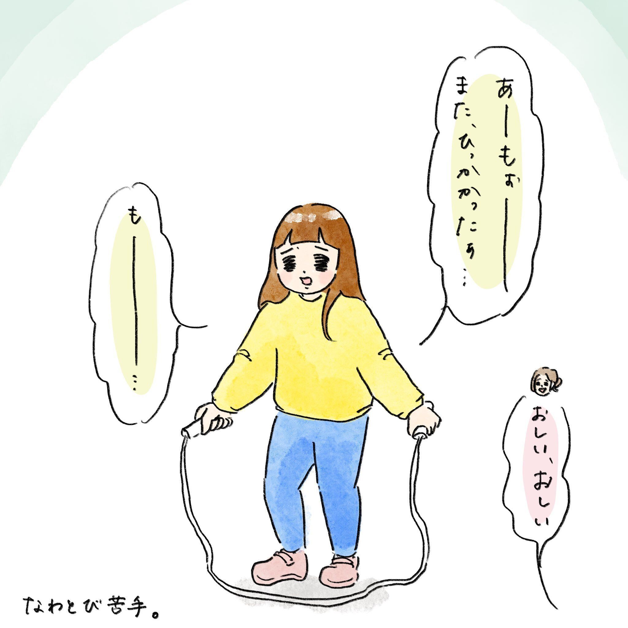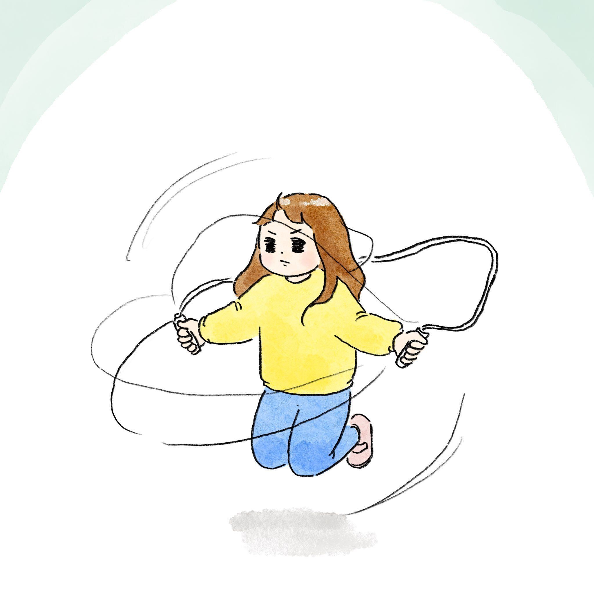 「縄跳びをそろそろやめると言うかな?と思っていたところ、突然踊り始めたので思わず笑ってしまいました。でも、怒ることなく楽しく切り替えられる娘に感心しました。前向きな姿勢を見習いたいです」