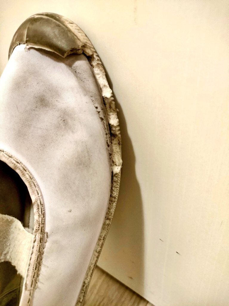 一見、ふつうの上履きに見えますが、よく見るとところどころゴムの部分が剥がれていますね。